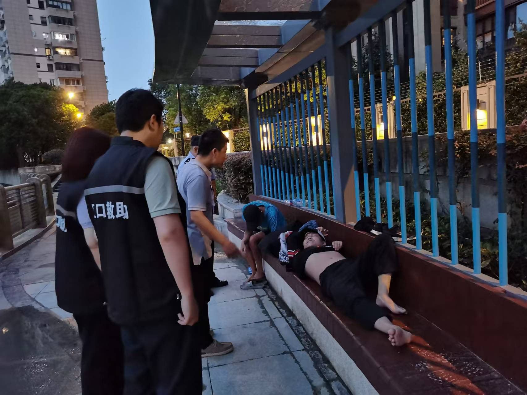 8月12日傍晚,四川北路街道城管大队在日常巡逻中发现虬江路沿河步道有两名外来人员躺在绿化带里的长椅上,便上前询问,了解到这两名外来人员既没有工作,也没有固定住所。两人在轨交桥柱下的夹角搭建了简易安身地,想在此过夜。城管人员迅速行动,第一时间将情况上报给了虹口区救助服务中心。