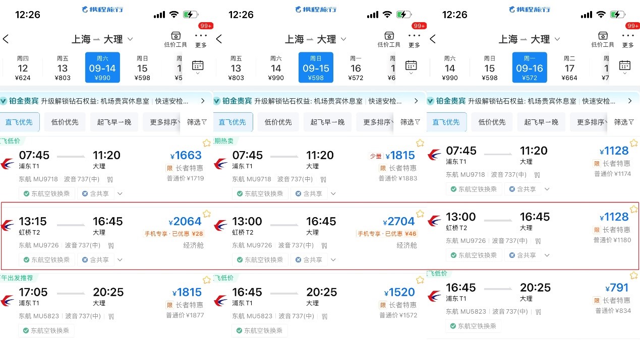 头图为不同日期出行机票价格差明显。网络截图