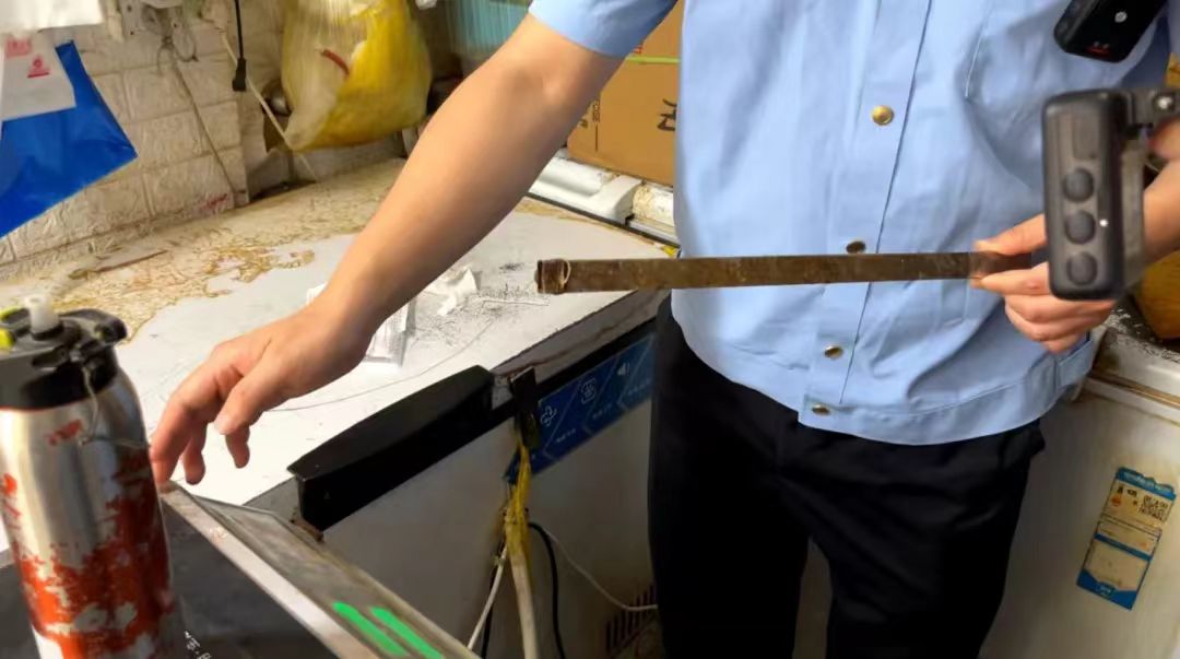 一些不法商家为了一己私利,竟在电子秤上动起了歪脑筋,利用“油门绳”、遥控器操控、预设作弊密码等手段,制造“鬼秤”欺诈消费者。北外滩市场监管所执法人员检查时,这户商家在电子秤不锈钢托盘和机身的连接处系上一根细线,细线另一端栓一根铁棒置于地面,当对商品进行称重时,通过轻拽细线或轻踩铁棒改变电子秤显示的重量,增加商品的称重重量,从而抬高商品售价,达到欺骗消费者获利目的。