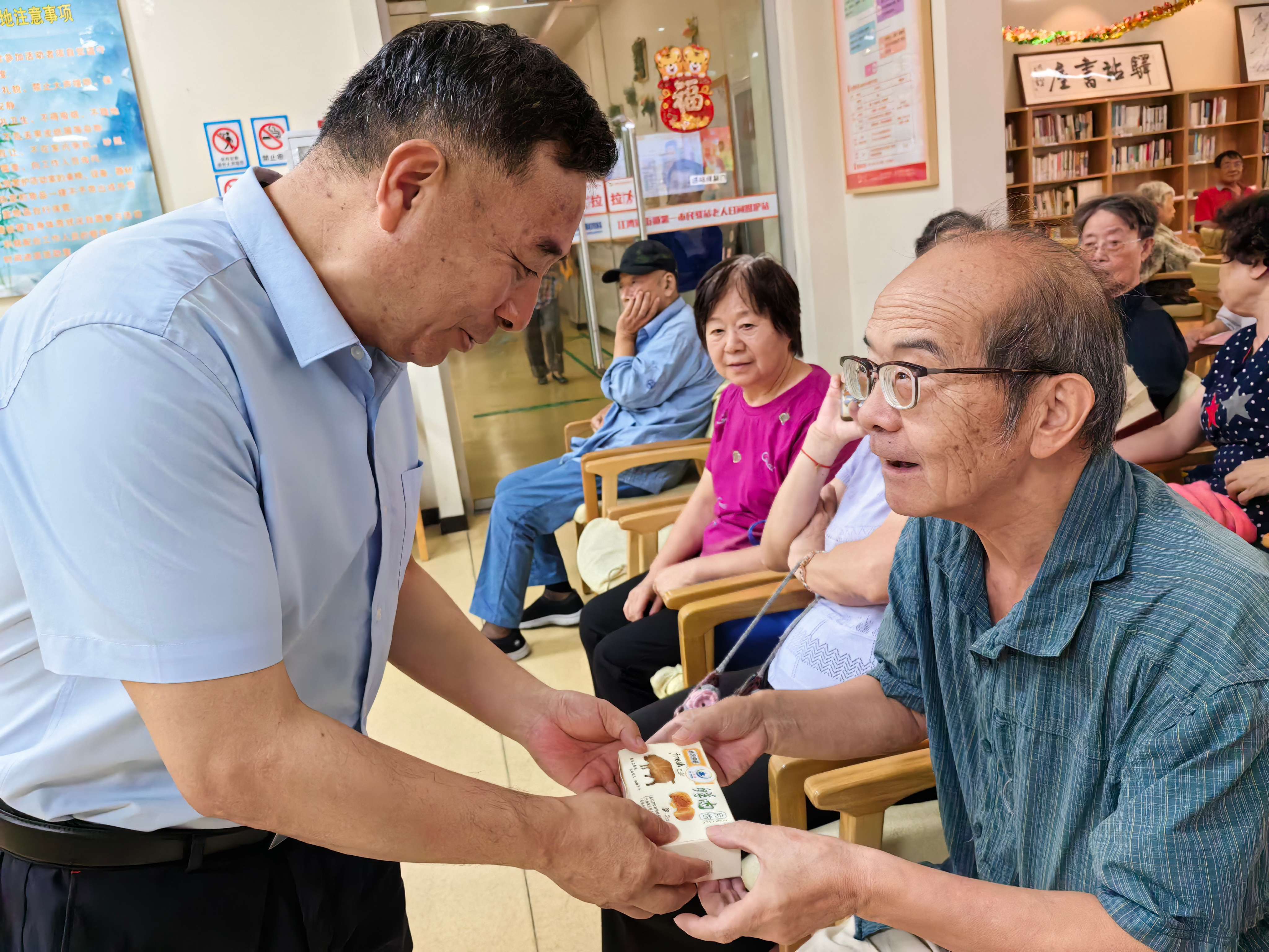 头图为街道相关负责人为孤老送上月饼。宏新摄