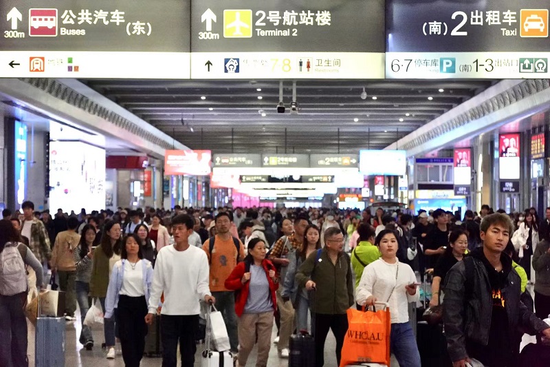 头图为虹桥火车站到达区域旅客络绎不绝。劳动报记者 贡俊祺 摄影