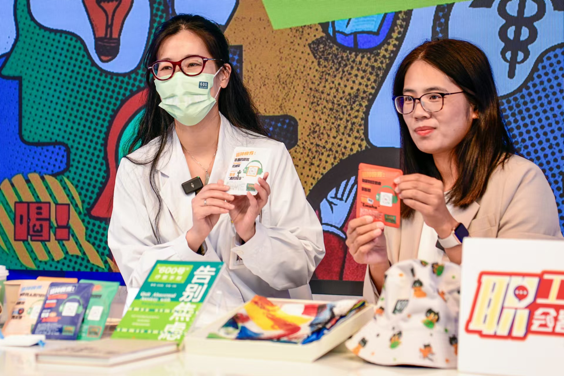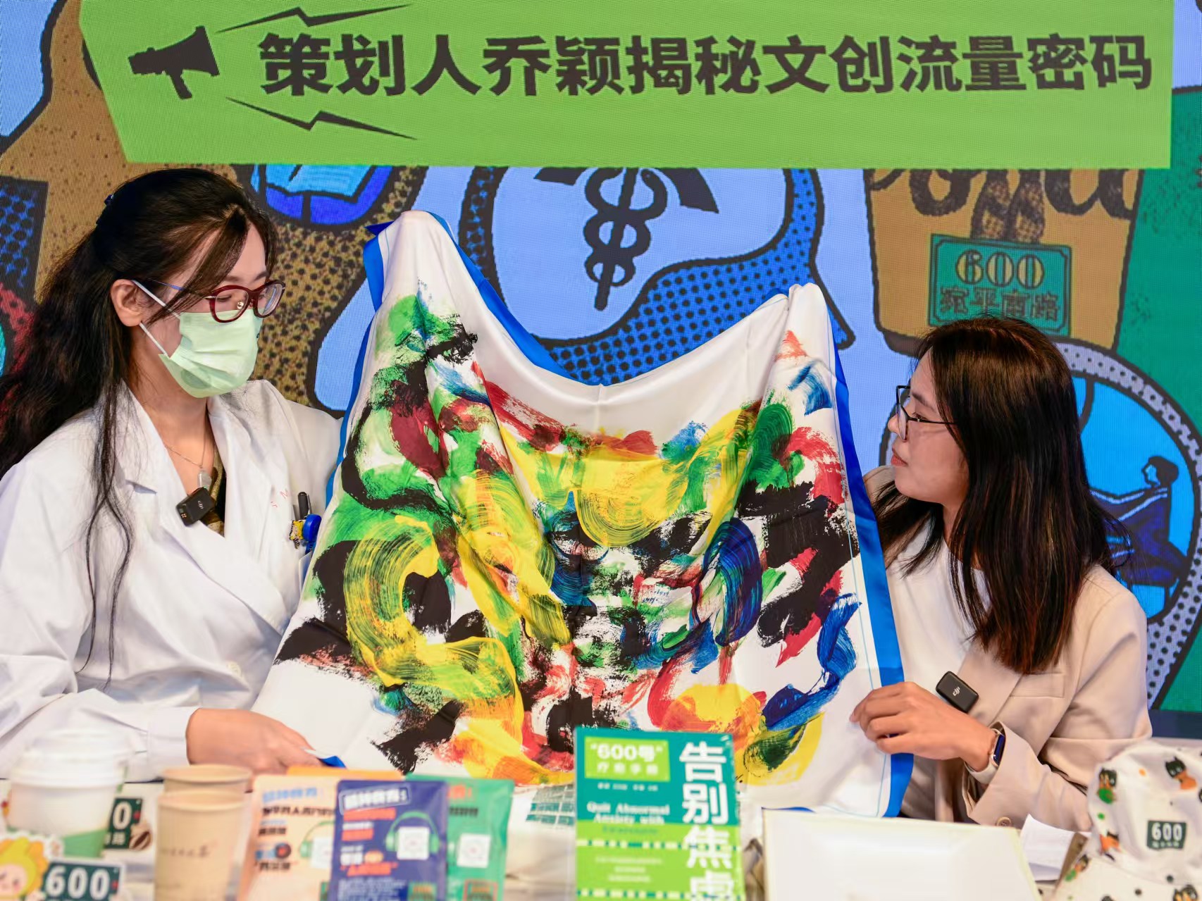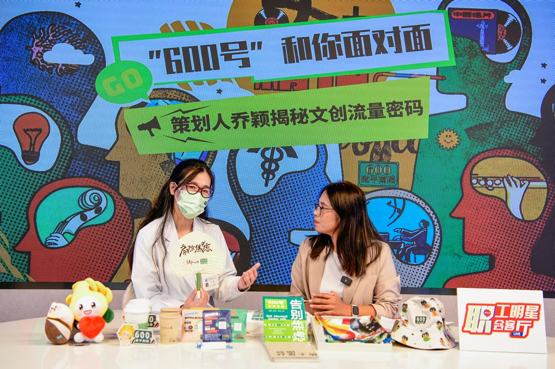 直播中,乔颖医生展示“600号”文创产品。劳动报记者 颜筱依 摄影