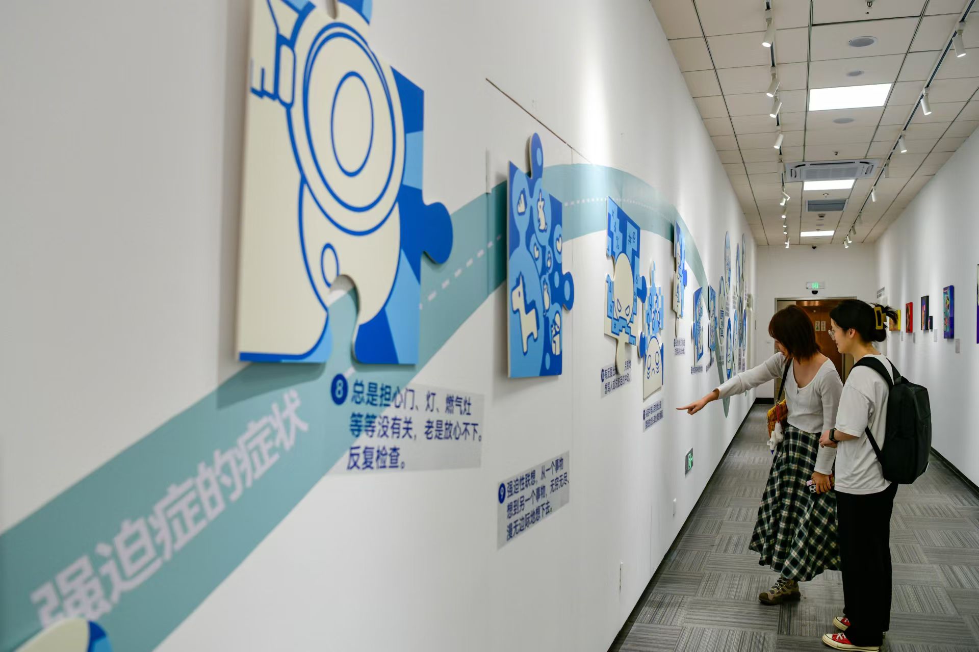 “除了文创产品,600号画廊很多人称为直通人心的‘美丽走廊’。”在乔颖医生的带领下,记者来到了“600号”画廊,这里继进食障碍症主题画展后,正在举办一个以强迫症为主题的《允许不完美》展陈。