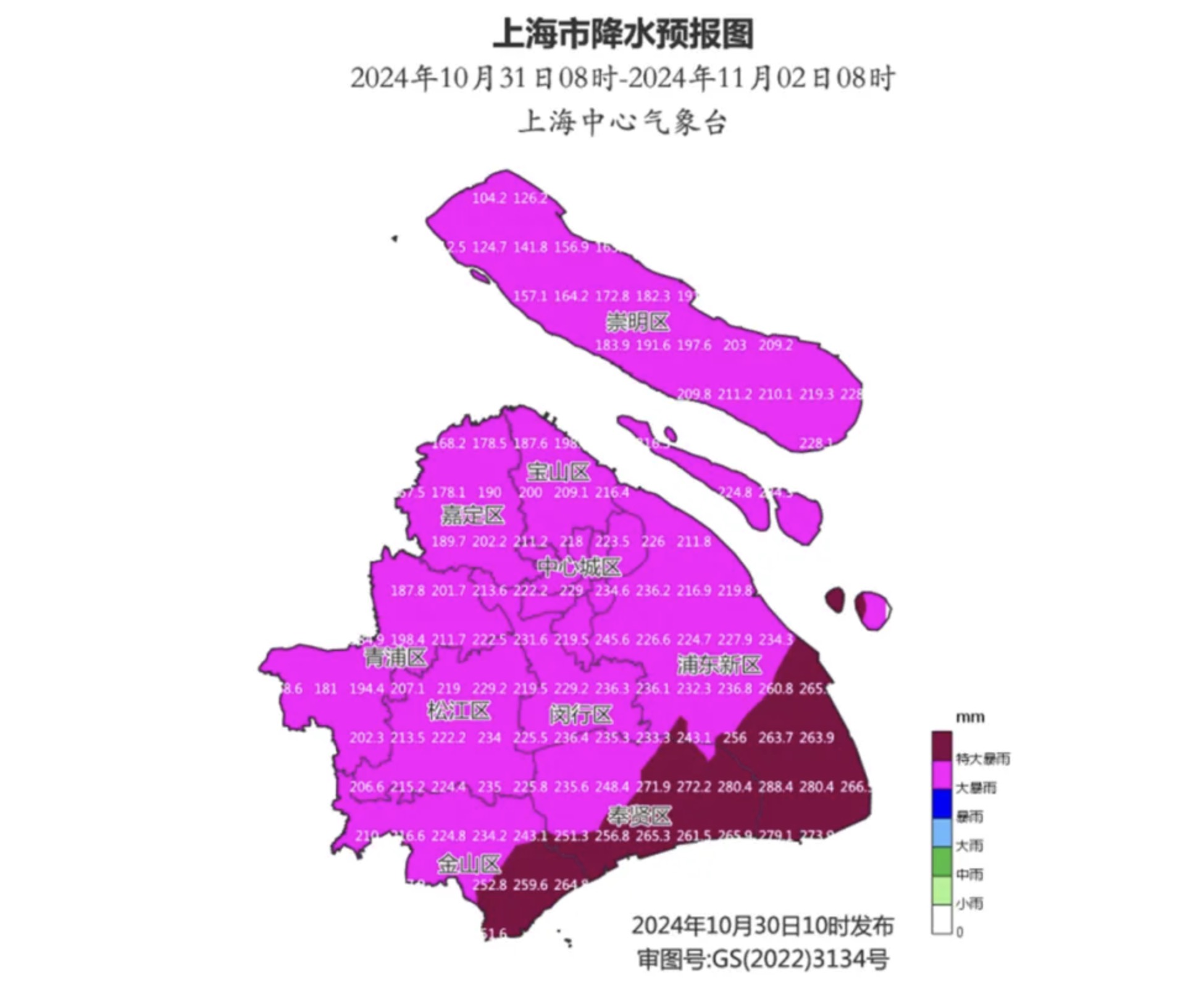 受今年第21号台风“康妮”外围环流和冷空气共同影响,31日傍晚到11月1日,本市有大暴雨,过程雨量120~180毫米,东南部可达220~280毫米,最大小时雨强40~70毫米,降水具有极端性,有可能成为1981年以来11月最大降水过程;31日夜里起风力逐渐增大,11月1日最大陆地阵风8~9级,洋山港区阵风10~11级。