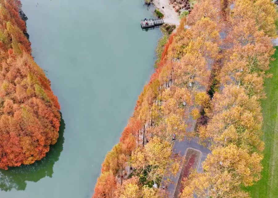 深秋到初冬是大自然赋予树叶神奇色彩的时刻。记者从世纪公园了解到,目前,园内鲜艳的嫩绿,高贵的金黄,深邃的棕红拼成了一盘限定调色盘,市民可来此共赏美景。