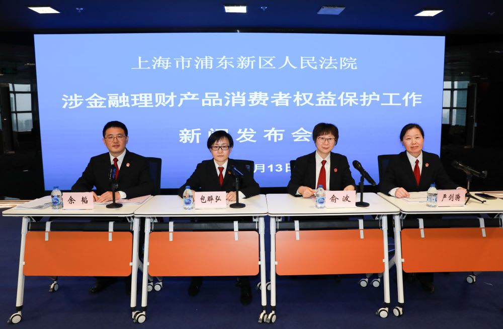 在“3·15国际消费者权益日”即将到来之际,3月13日,上海市浦东新区人民法院(以下简称浦东法院)在位于金茂大厦的“浦东法院 陆家嘴金融城 金融纠纷治理法官工作室”举行新闻发布会,聚焦涉金融理财产品消费者权益保护,以司法实践回应社会关切,守护金融消费者的“钱袋子”。
