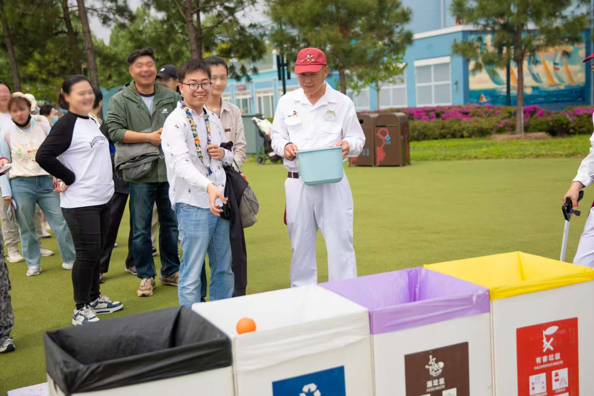 头图为市集现场,游客参与垃圾分类小游戏。主办方 供图