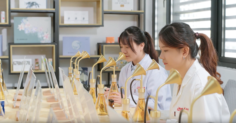 头图为上海应用技术大学香料香精化妆品学部学生根据企业课题开展实验。校方供图