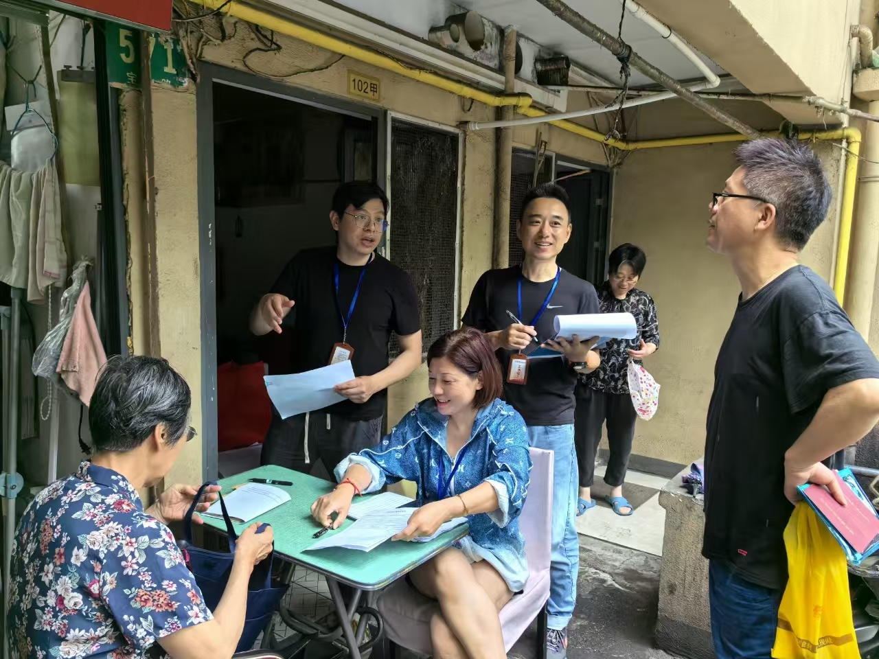 头图为旧改工作人员开展居民排摸工作。静安区供图