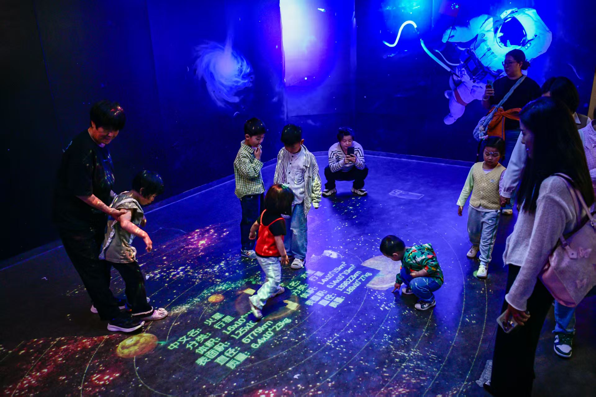 孩童在太空展厅内嬉戏。劳动报记者颜筱依摄影