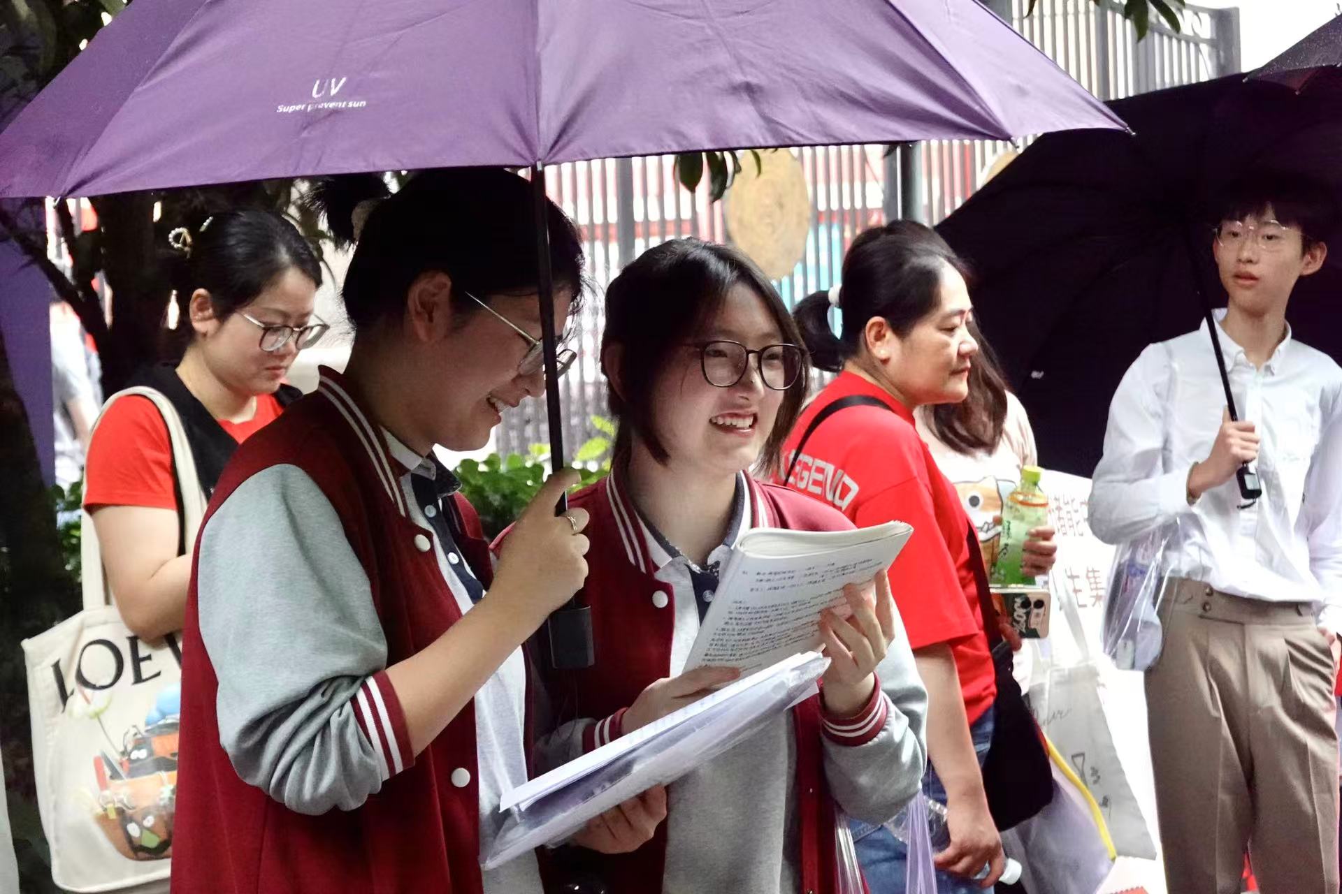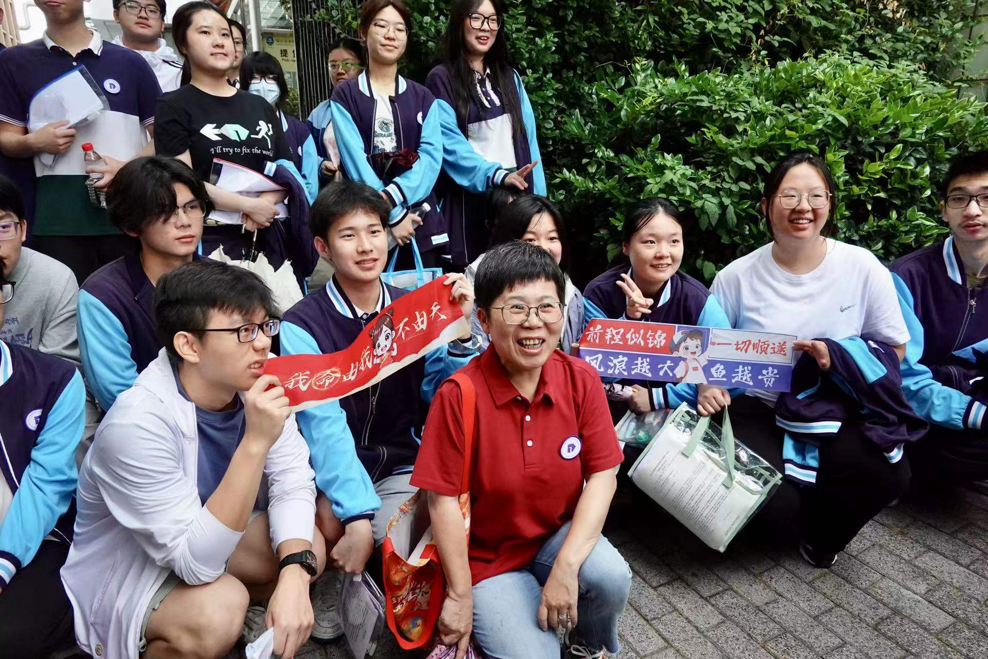 家长“松弛陪考”,老师们花样送祝福,2025年上海高考今天开考