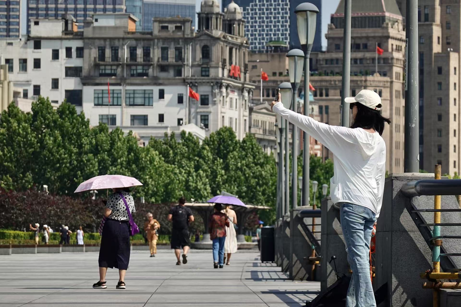 头图为市民在烈日中。劳动报记者 贡俊祺摄影