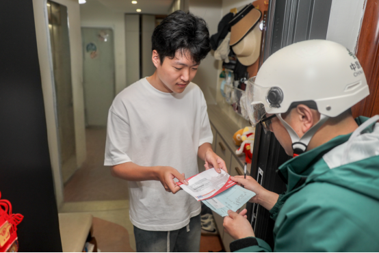 头图为上海邮政将成绩单送到考生手上。上海邮政供图