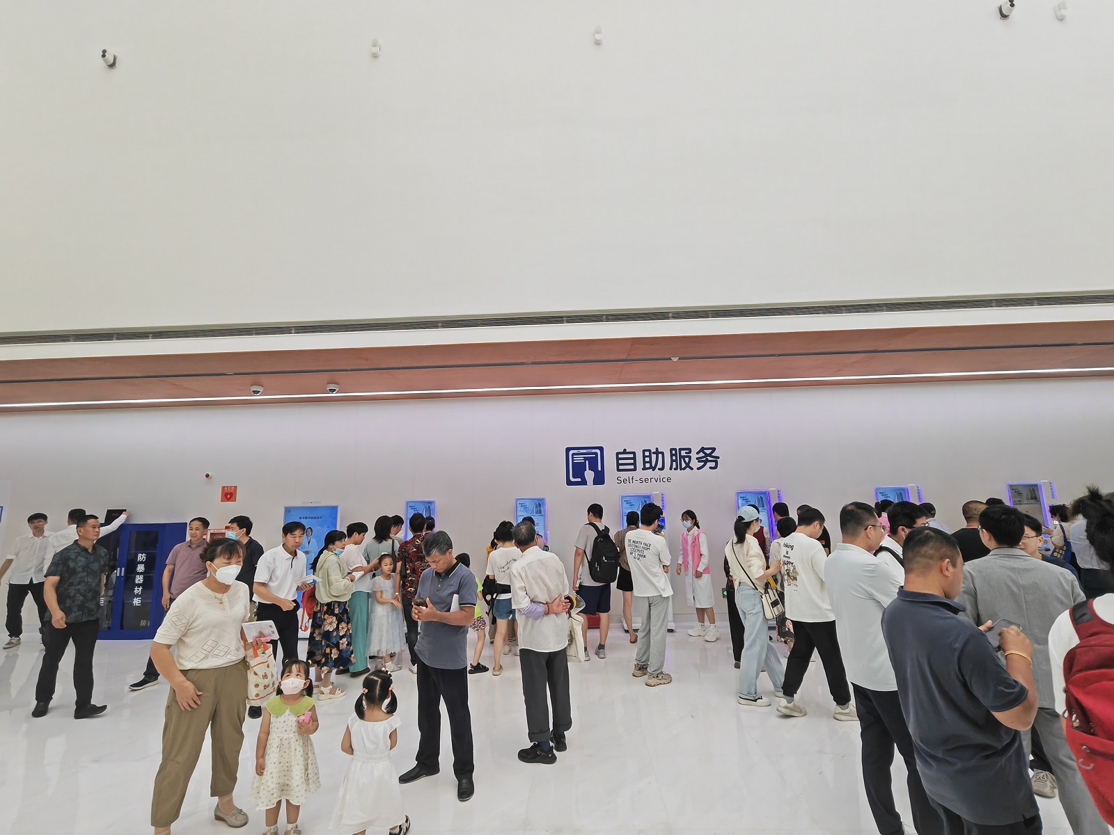 一大早门诊自助机前就开始聚拢人群。劳动报记者李蓓 摄影