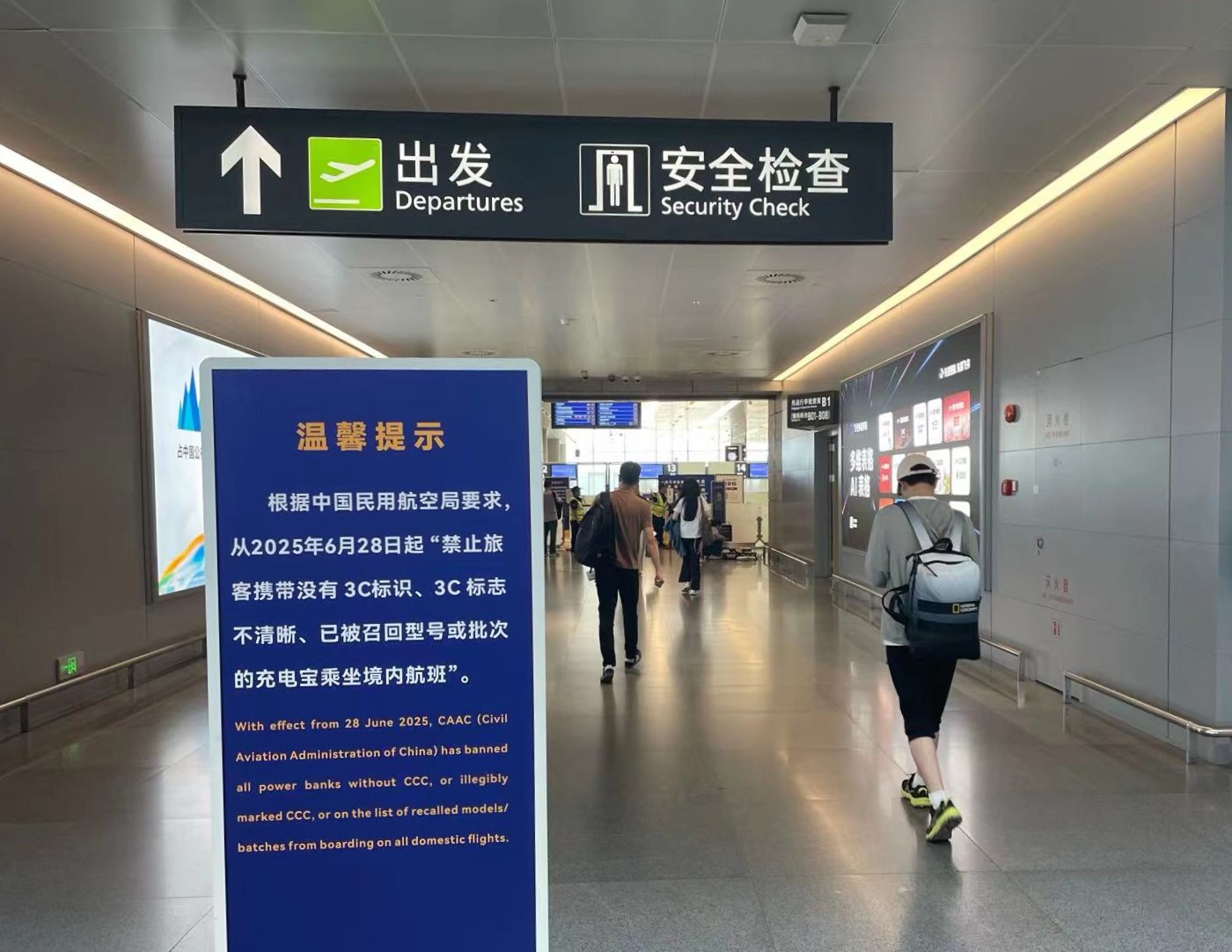 6月28日起,根据民航局发布的最新通知规定,禁止旅客携带没有3C标识、3C标识不清晰、被召回型号或批次的充电宝乘坐境内航班。