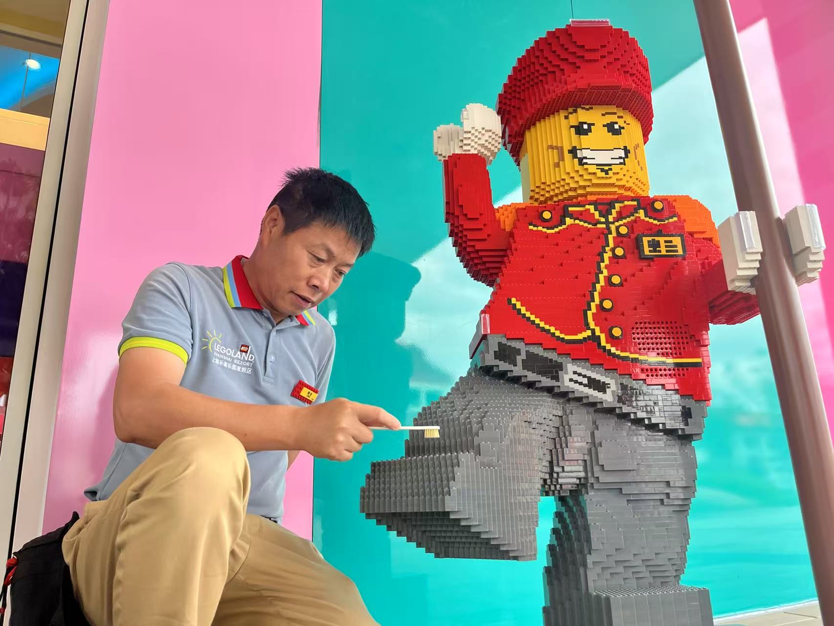 工作人员对乐高进行维护。图为劳动报记者 贡俊祺 摄影