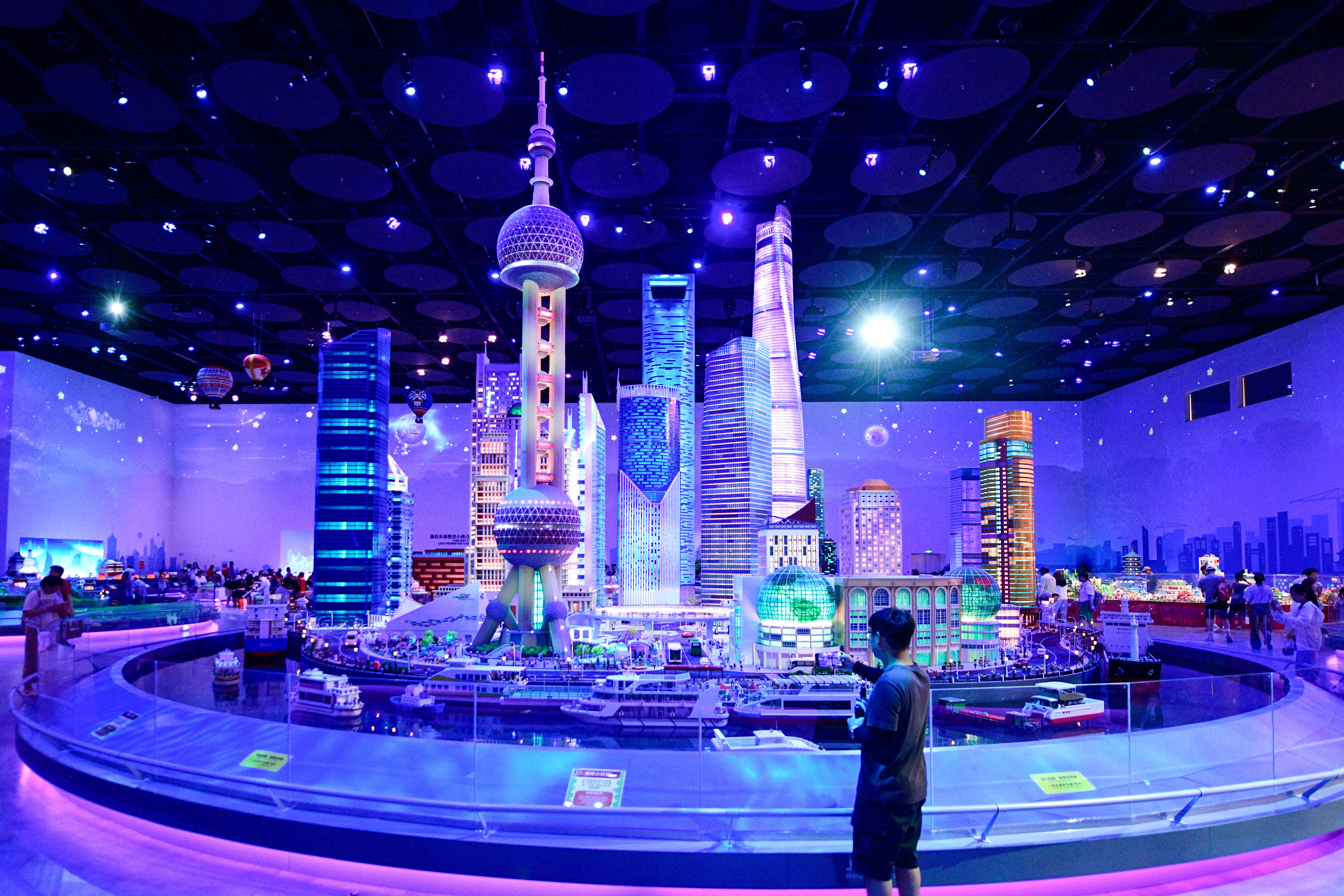 乐高积木搭建而成的现代上海都市景观。劳动报记者 颜筱依 摄影