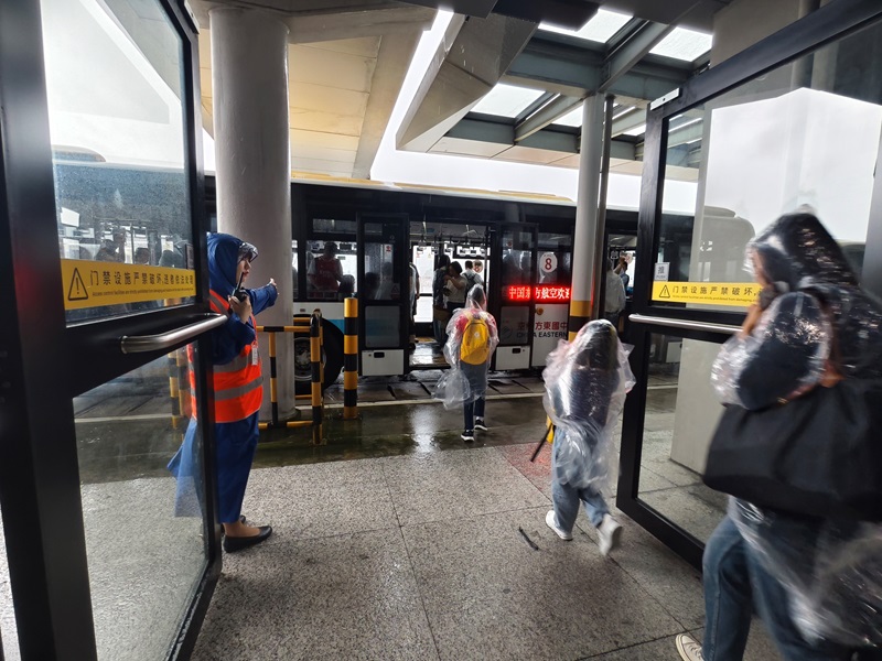 对于当日运行的航班,东航积极做好服务保障工作,重点加强对航空器和各类地面设施设备的检查,特别是关注客梯车、摆渡车、行李运输车等与旅客出行息息相关的车辆、设备运行顺畅。例如,东航为所有在雨天使用的行李运输车、货物拖斗车加盖了防水布,确保行李在装机、卸机过程中防护到位;地面摆渡车降低雨天行驶速度,并适当调高车内空调温度,避免旅客上下车经历“较大温差”。