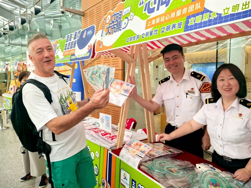 头图为上海南站里乘客在文明实践主题活动现场积极互动。铁路部门供图