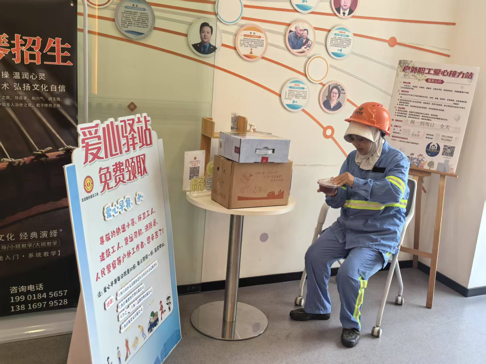 头图为户外工作者在党群服务中心歇息。受访者 供图