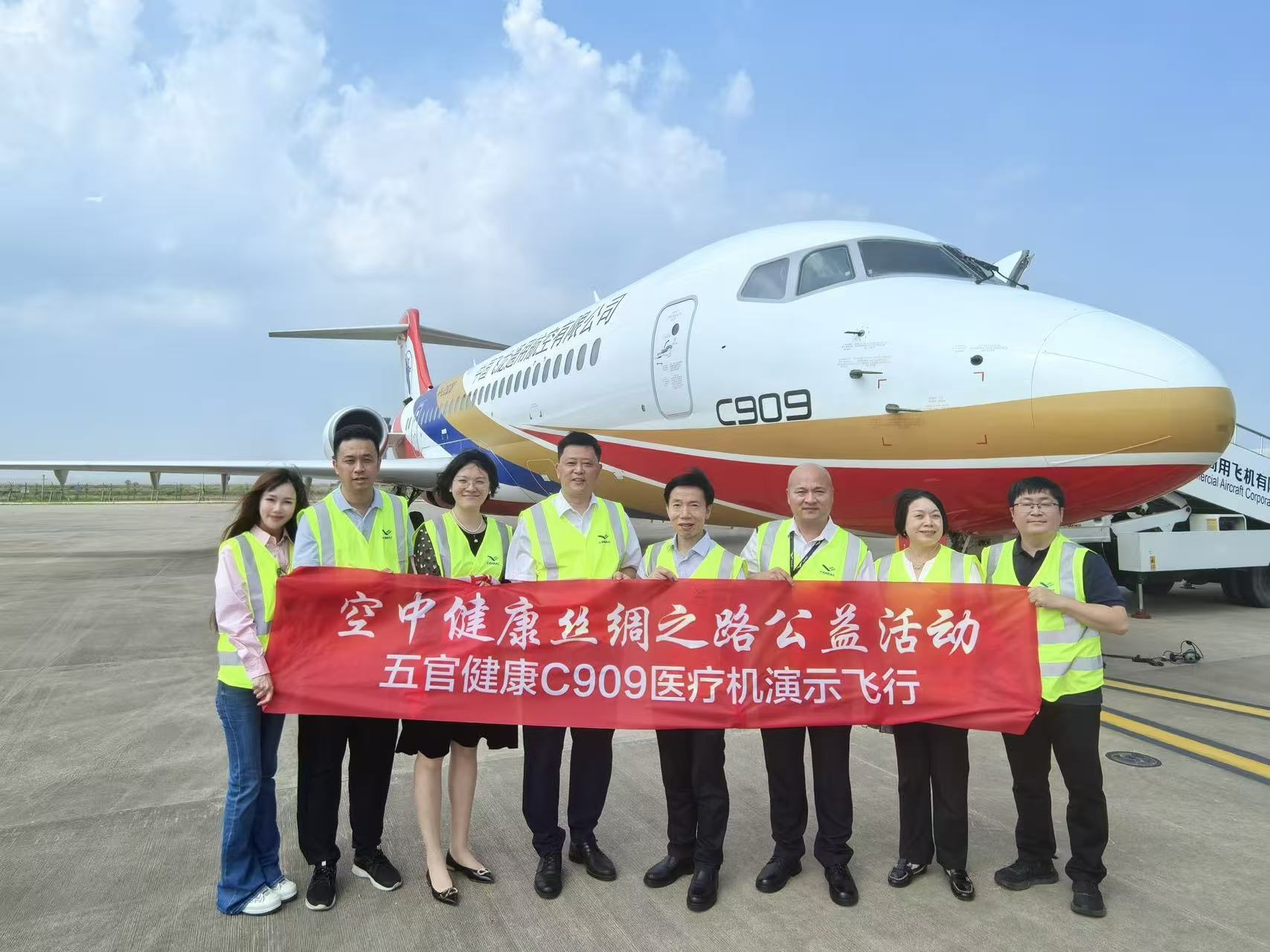 头图为“五官健康C909医疗机演示飞行”首飞成功。五官科医院供图