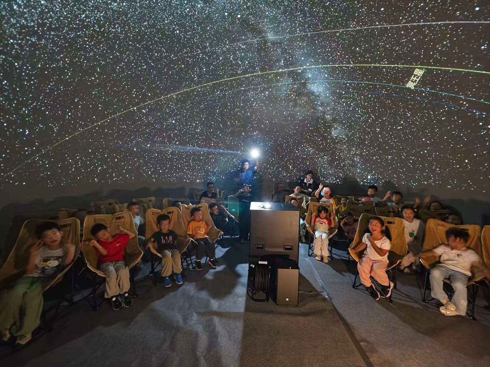 头图为上海天文馆全国科普月活动,孩子们仰望星空。科技馆供图