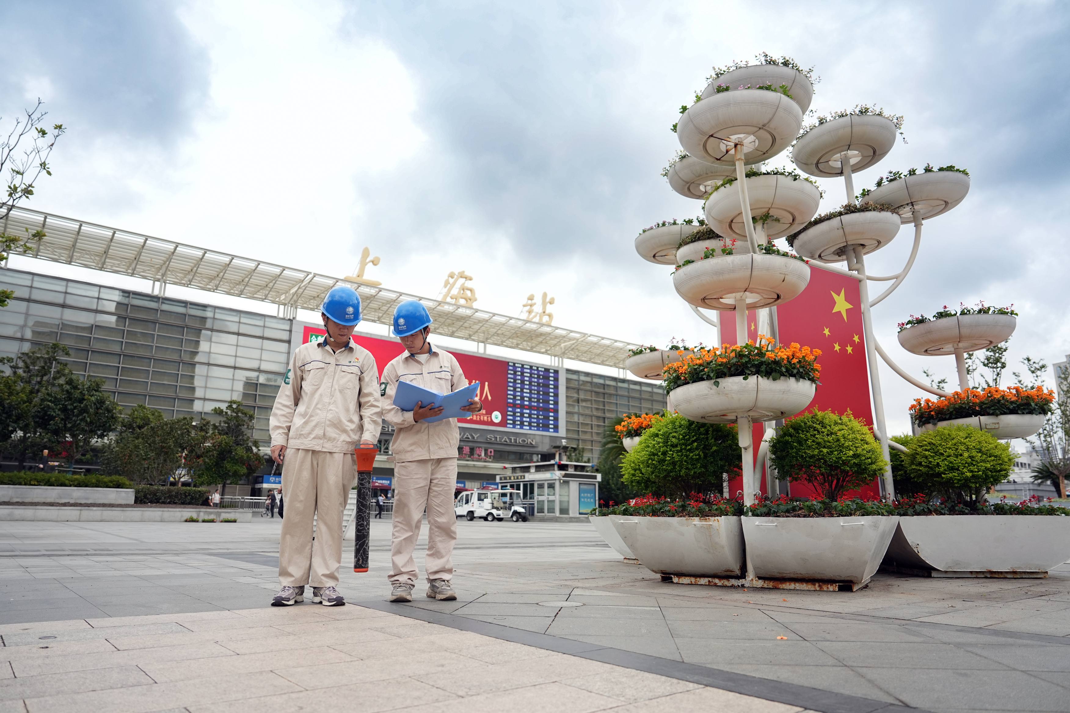 9月28日,国网上海市北供电公司电缆设备运维人员在上海火车站南广场开展节前特巡。作为上海市区最为重要的交通枢纽,今年国庆中秋“双节”黄金周上海火车站客流量将大幅攀升,电力保障直接关系到车站运营秩序与旅客出行体验。为应对用电高峰,市北供电公司节前即启动对车站供电线路、配电站房及用户设备的全面巡检维护。节日期间,针对上海火车站等重要用户制定"双节"专项保电方案,增派值班力量与待命发电车,对保电重点线路及变电站实施不间断高频监视,确保任何异常都能第一时间进行处置。