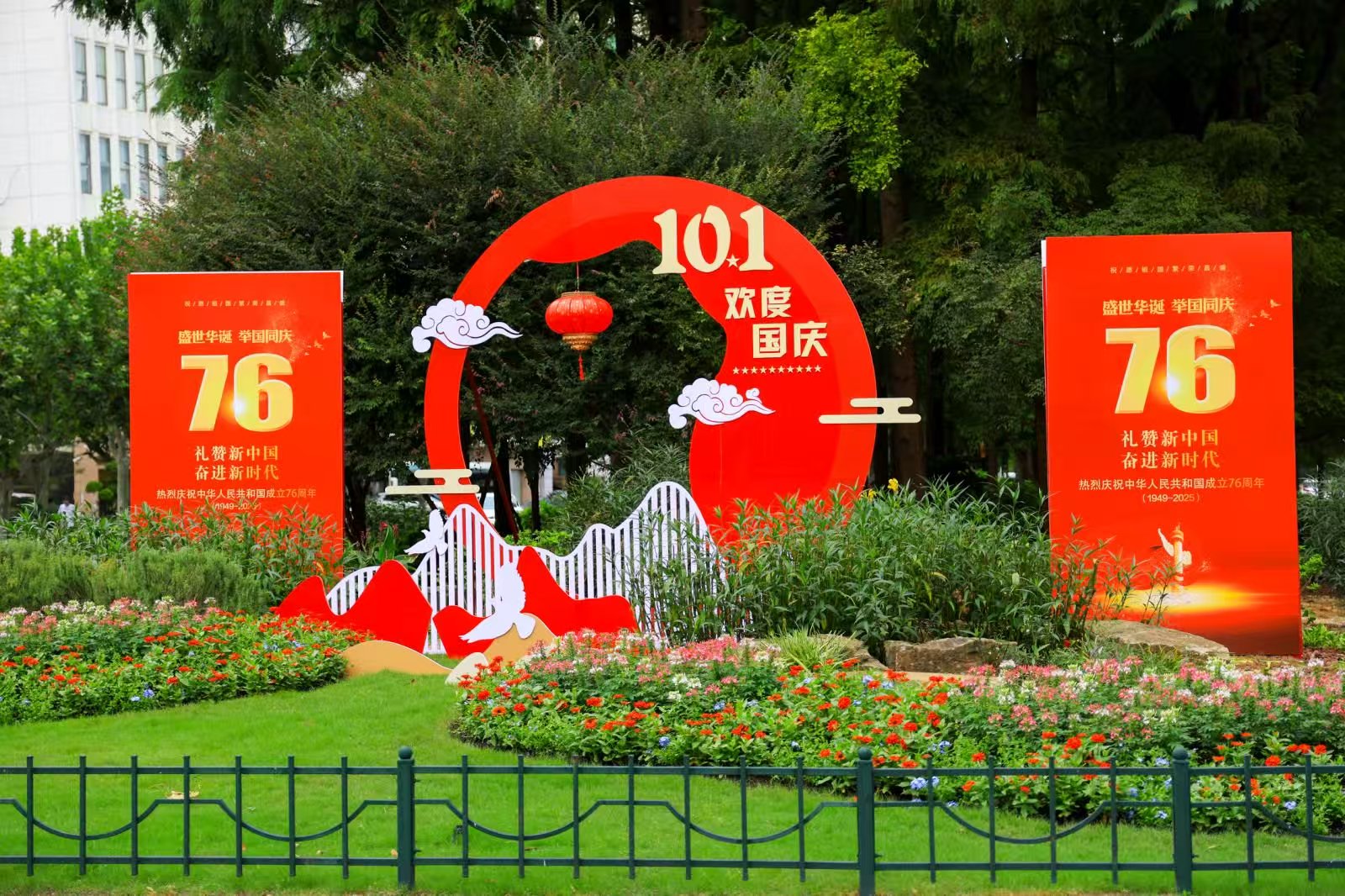 头图为国庆花卉布置之一。市绿化市容局供图