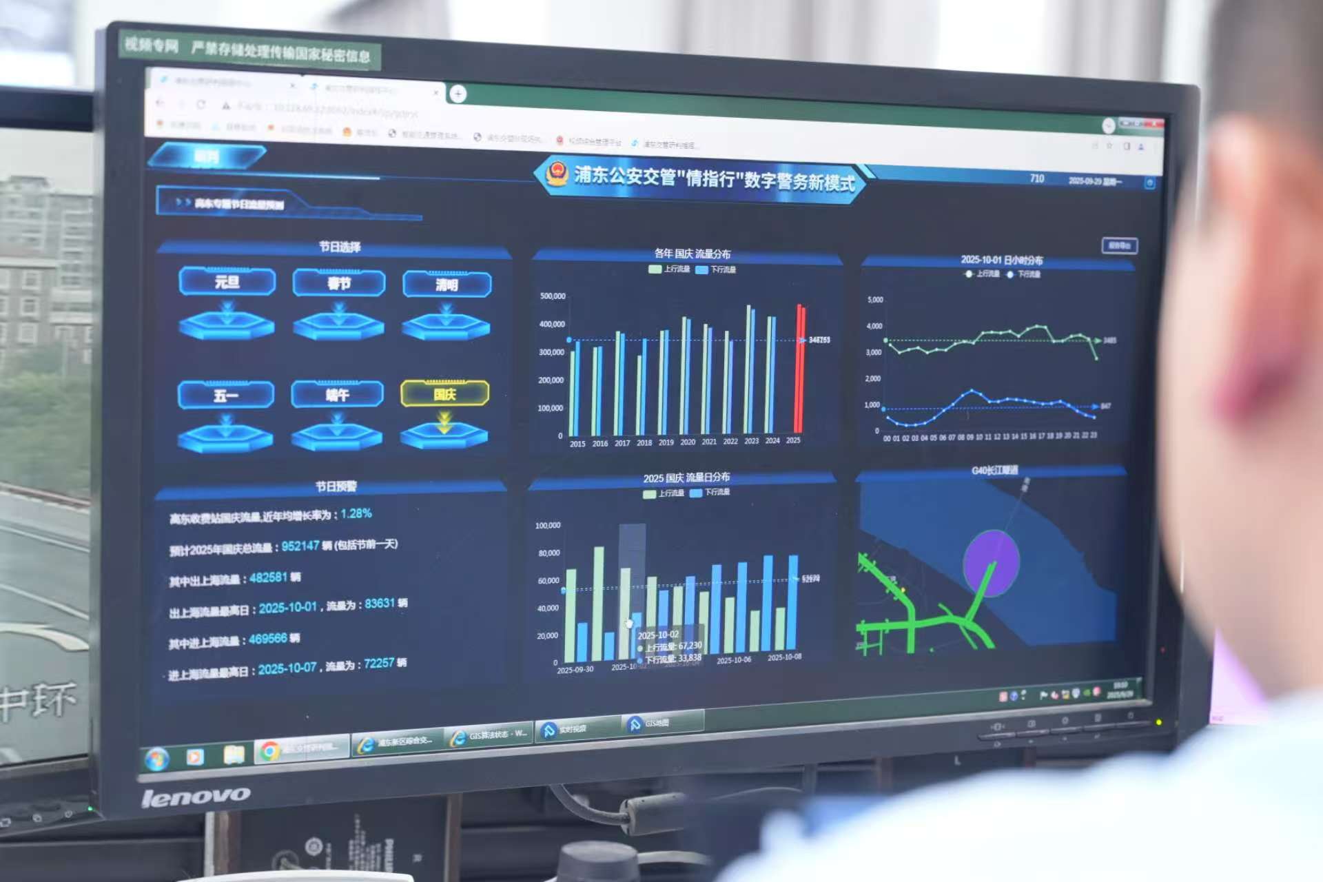头图为浦东交管对节日期间重点通行区域加强监测。受访者供图