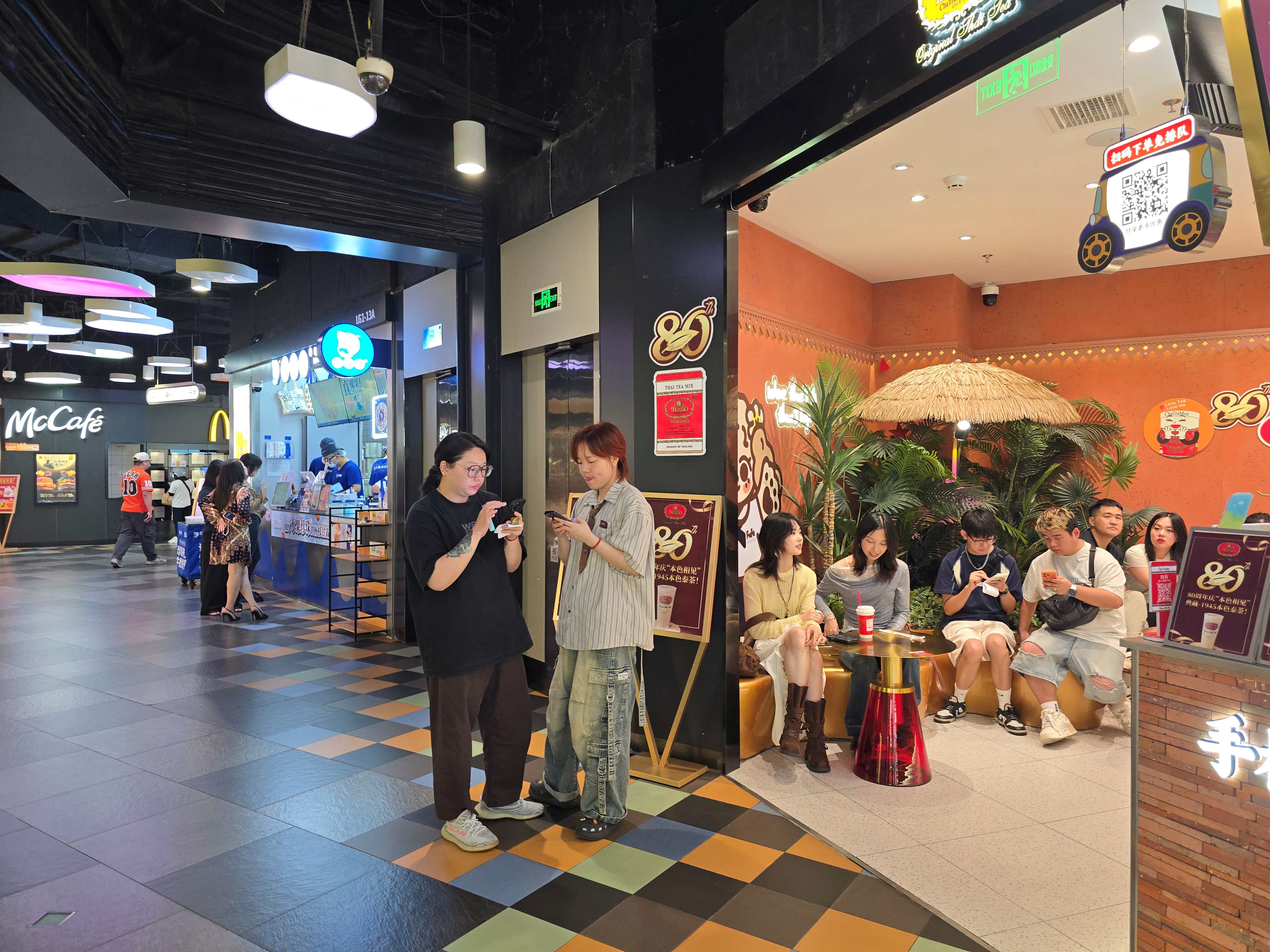 头图为商场内同一区域聚集着多家饮品店。劳动报记者于玘珺 摄影