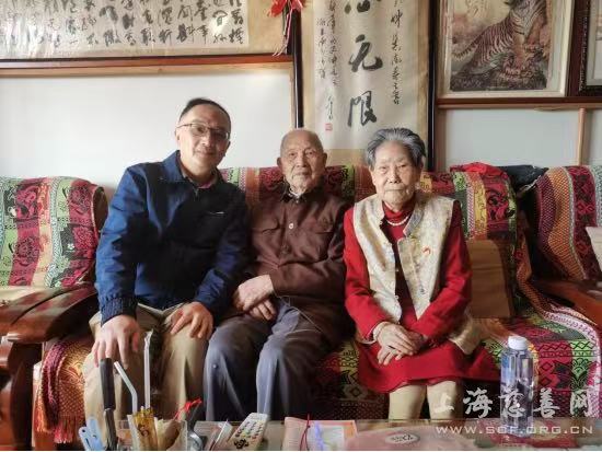 头图为看望蒋孔悌(101岁)、赵琴夫妇。市慈善基金会供图