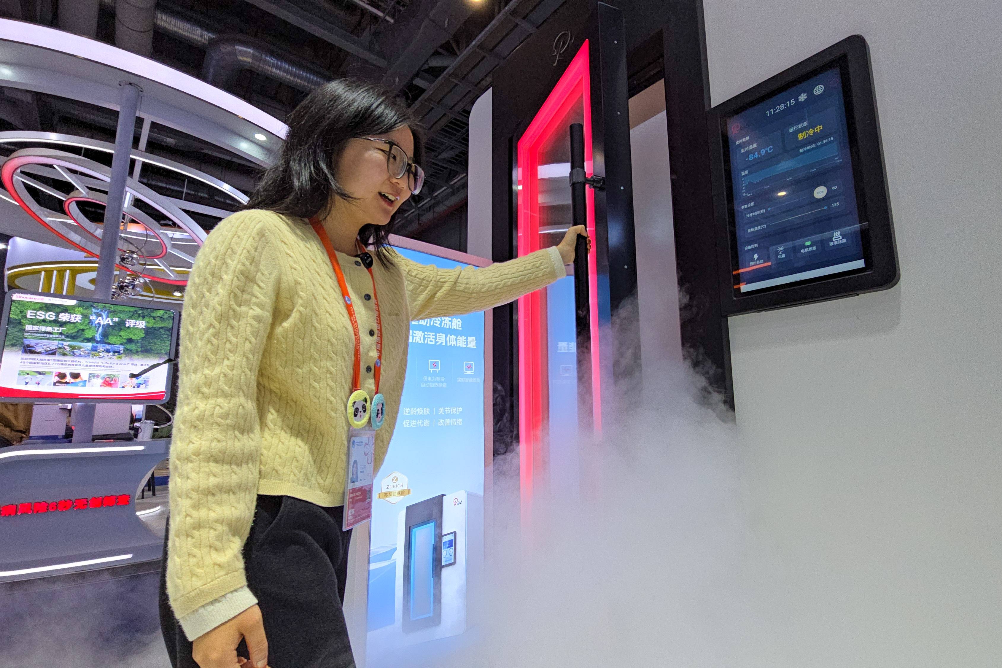 在进博会上,“最冷”的地方有多冷?答案是零下130度。这里不是保存食品或药品的冷库,而是医疗器械展区参展企业带来的一台冷冻仓。它的温度可以达到零下130度至零下150度,通常用于运动员或健身人士运动后缓解肌肉疼痛。