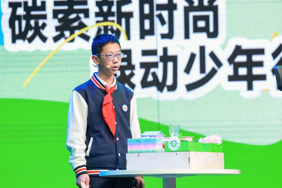 在学段展示环节,不同年龄段的学子各展所长。小学组以“童言话低碳”传递绿色心声,来自上海市民办尚外外国语小学的丁爱源、张奇楠、李尚毅、樊苡聘四位同学带来了朗诵表演《给未来一片绿色》,用充满感染力的声音描绘了绿色家园的美好愿景;上海市虹口区广中路小学的马知言同学分享了将咖啡渣“变废为宝”制成实用肥皂的创意成果;上海市民办尚外外国语小学的钱凯文同学则围绕“我心中的低碳生活新时尚”主题,发出“给垃圾第二次生命”的环保倡议。