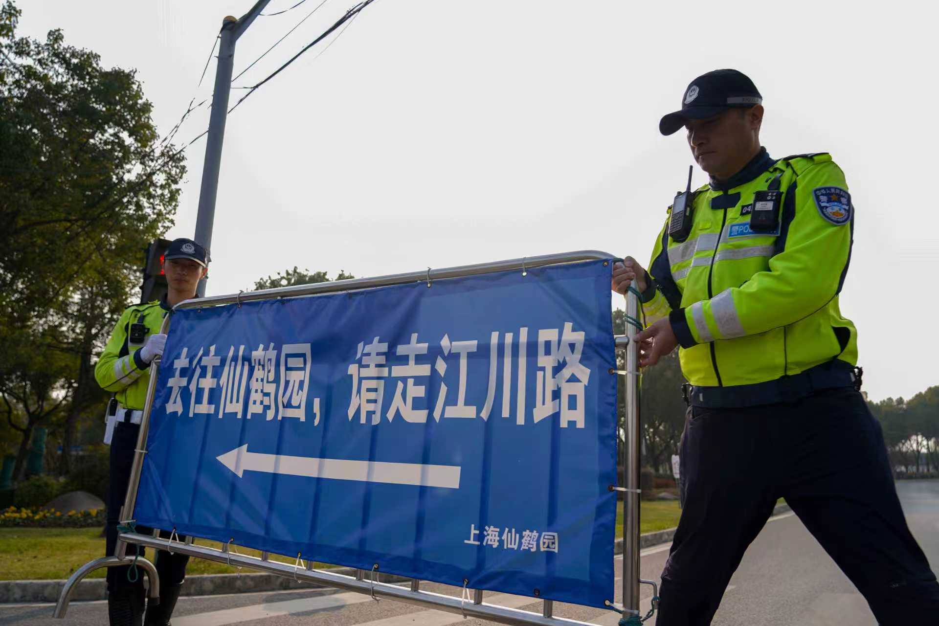 民警公安民警正在仙鹤墓园停车场疏导车流。闵行公安供图