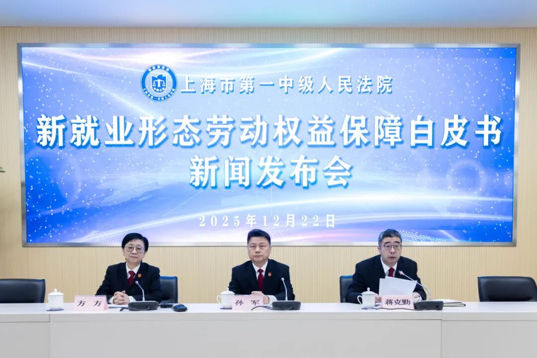 12月22日上午,上海市第一中级人民法院召开新就业形态劳动权益保障白皮书新闻发布会,通报上海市第一中级人民法院近四年涉新业态劳动争议案件审判的总体情况,并发布六件典型案例。