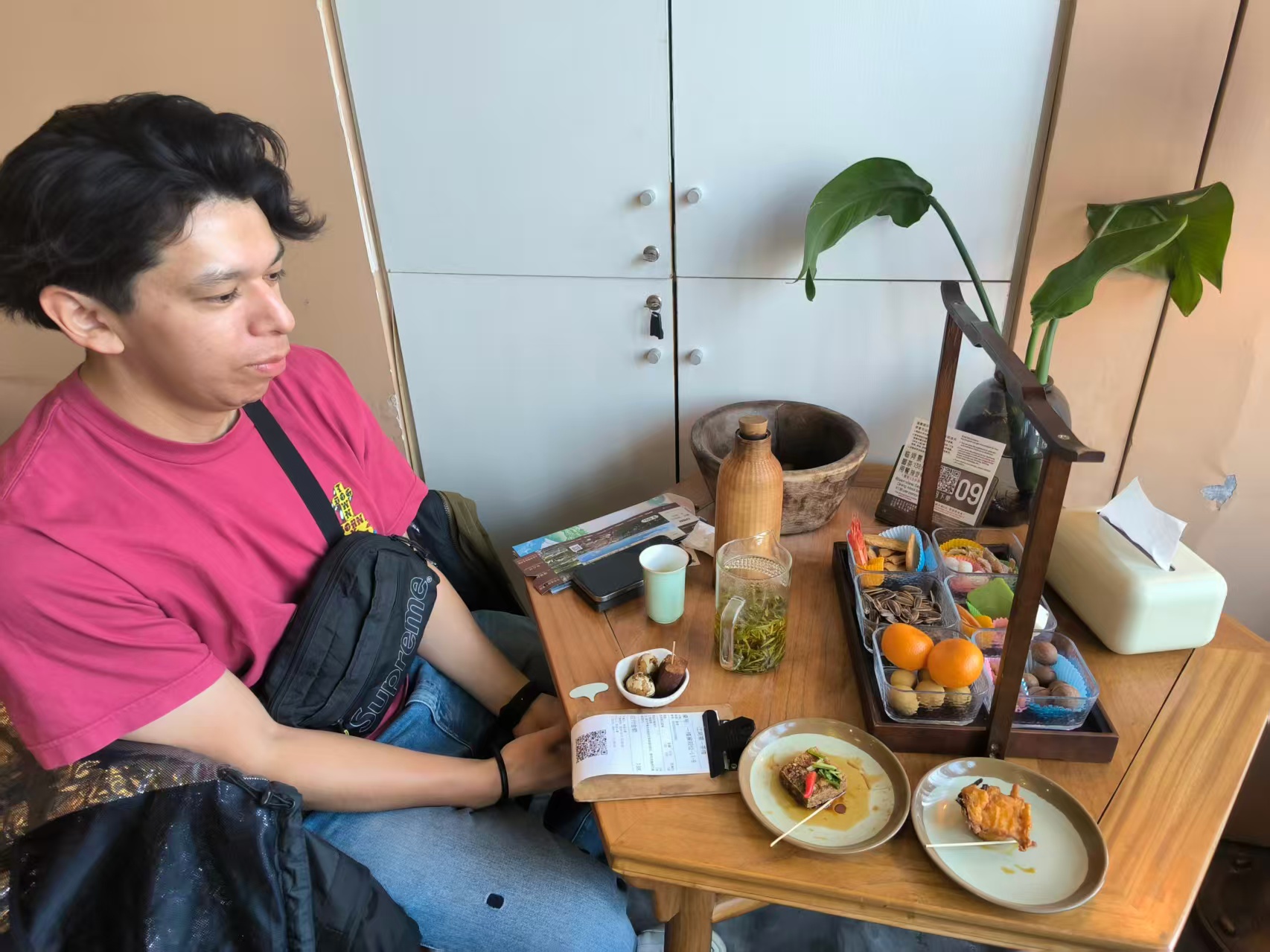 Jose点了茶楼里的“临河套餐”。劳动报记者叶佳琦 摄影