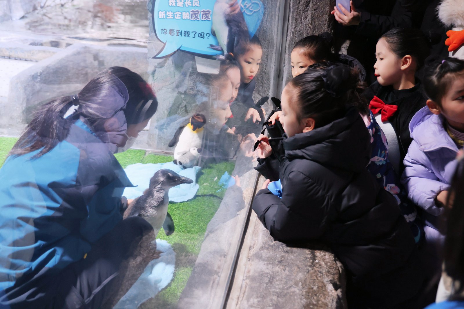 头图为长风海洋世界小企鹅吸引小游客。普陀区 供图