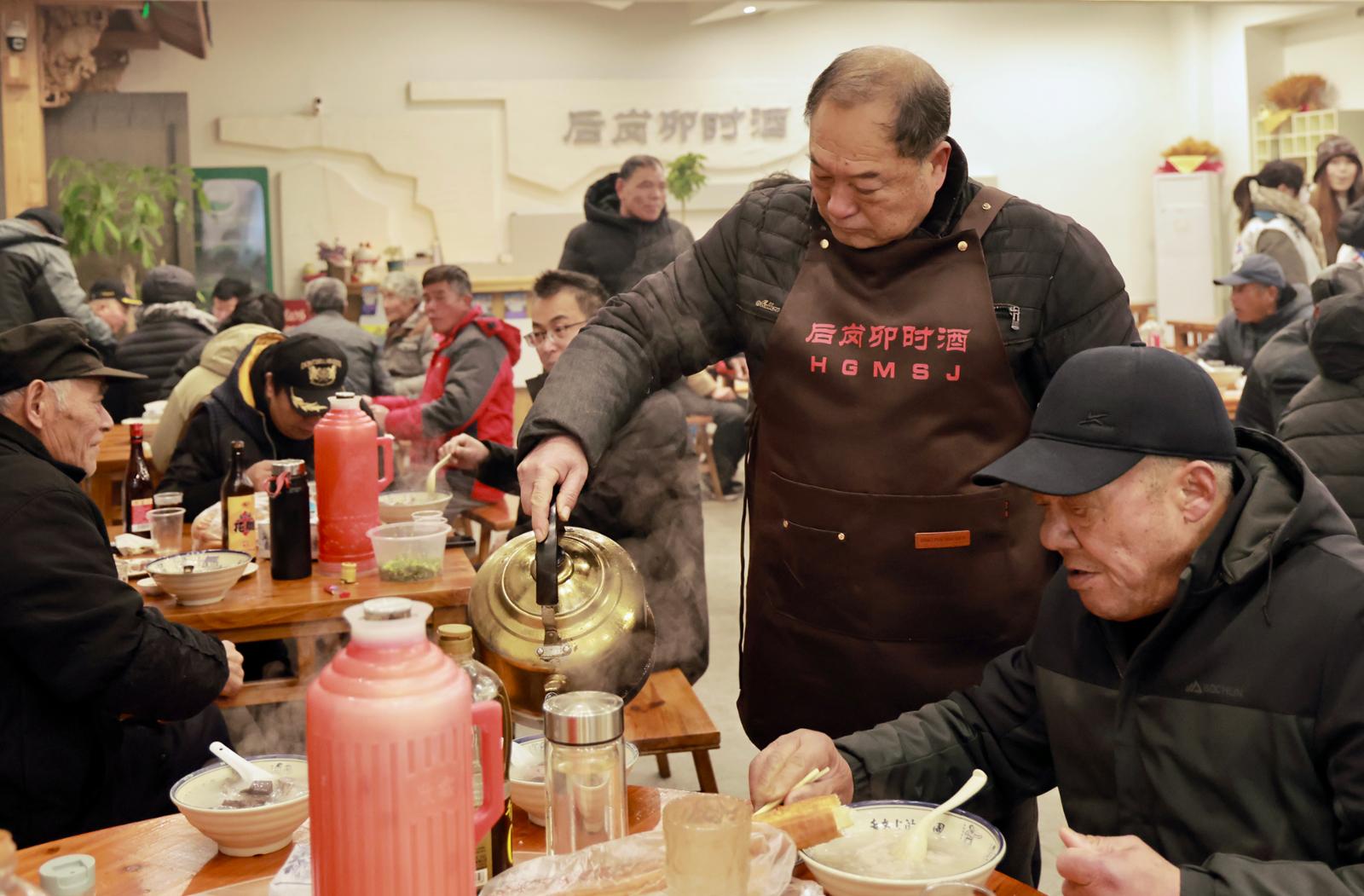 几十年过去,要问集镇上有什么民俗至今仍经久不衰,首推的便是后岗“卯时酒”。卯时酒最大的魅力,在于它的时间段,一般指在古时十二时辰的卯时,也就是现在的清晨5-7点这个时间段饮酒,酒的品类一般为陈年黄酒。