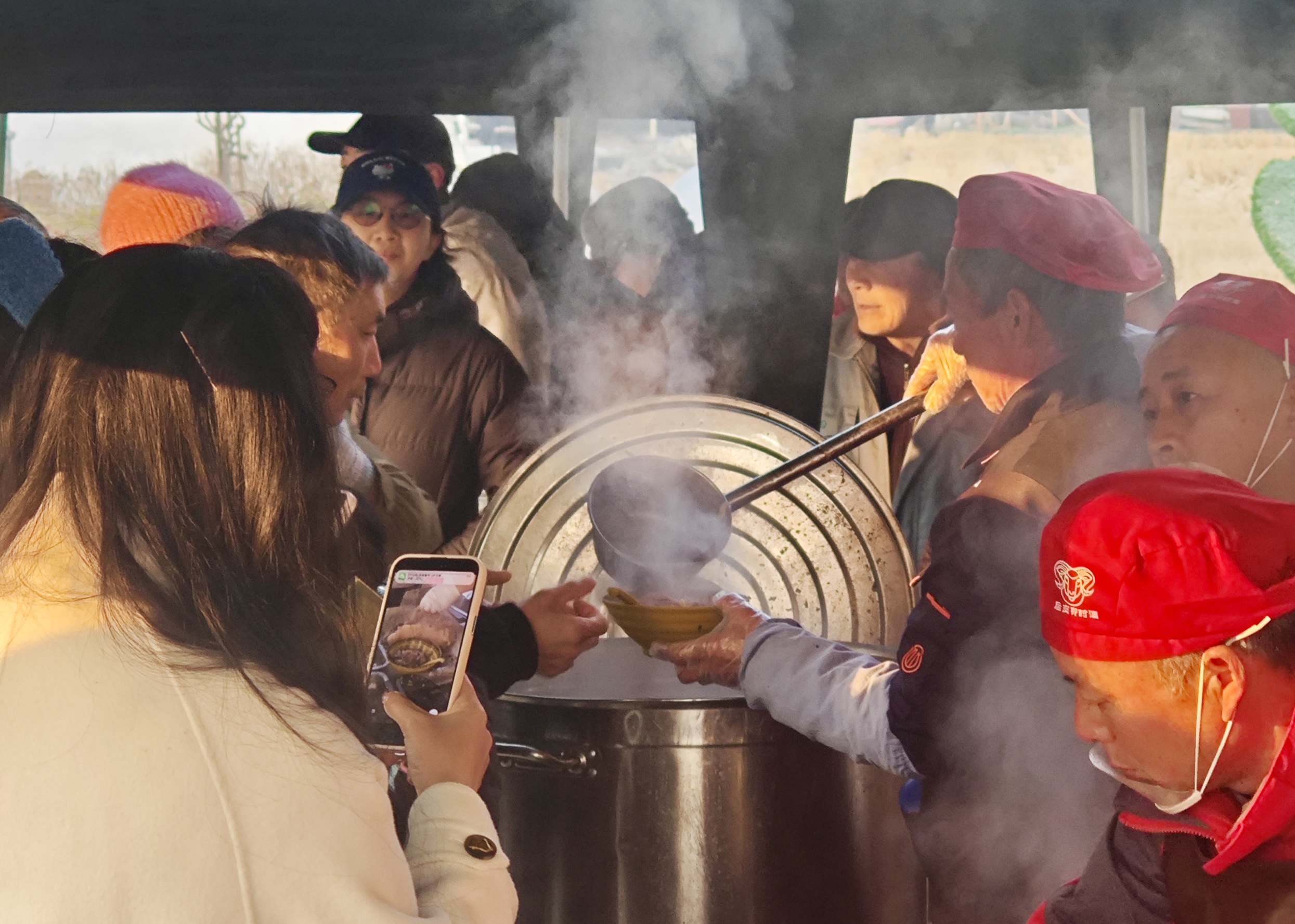 图为羊肉汤店里,人们围着刚煮好的羊汤,等待品尝美味。劳动报记者 贡俊祺 摄影
