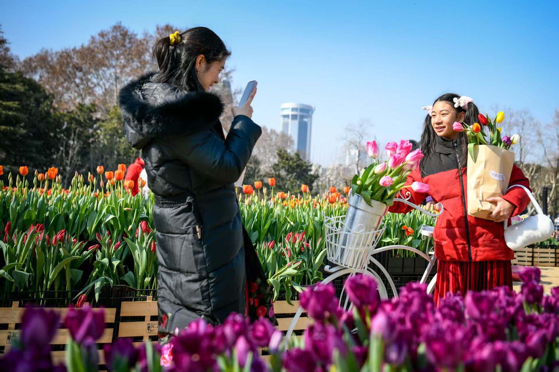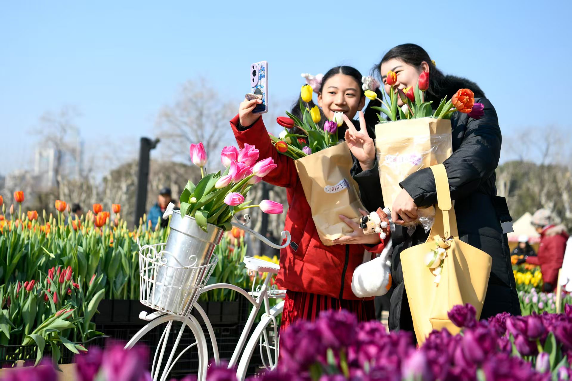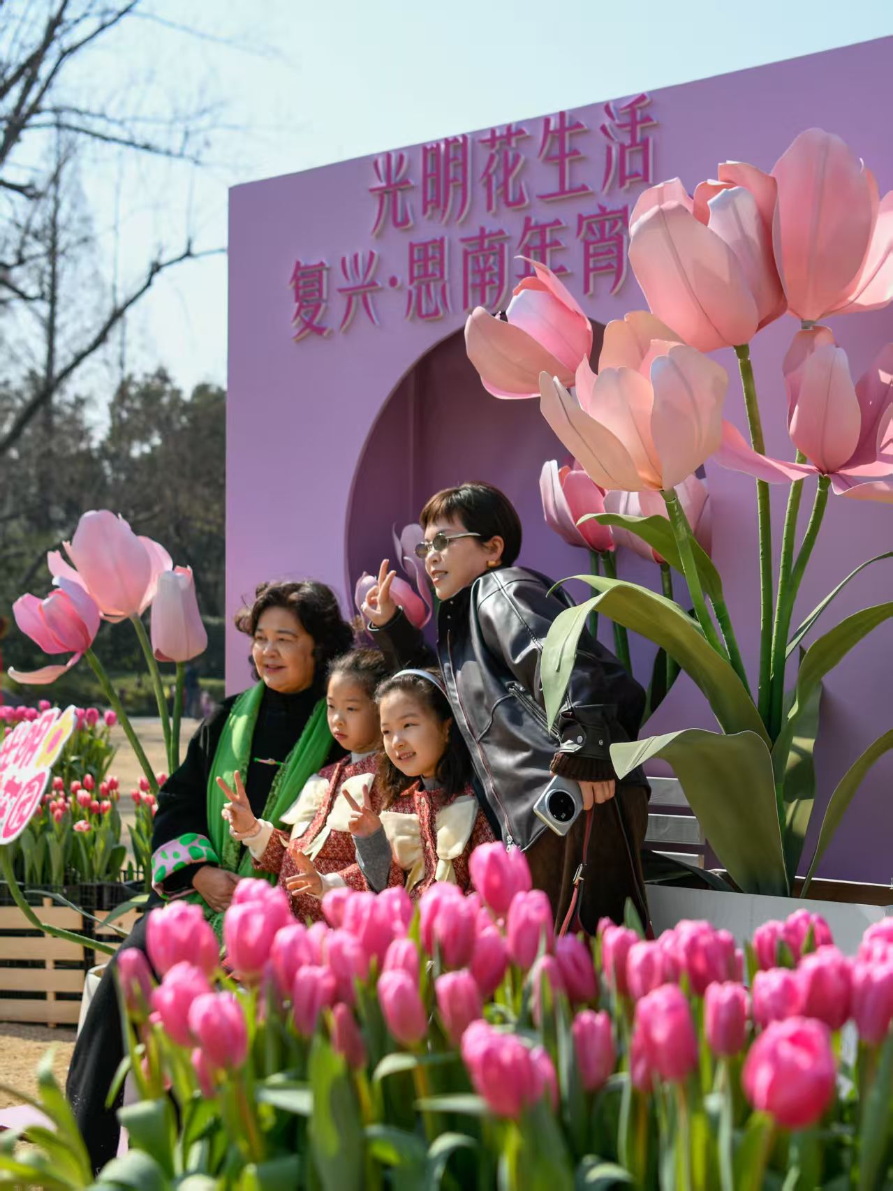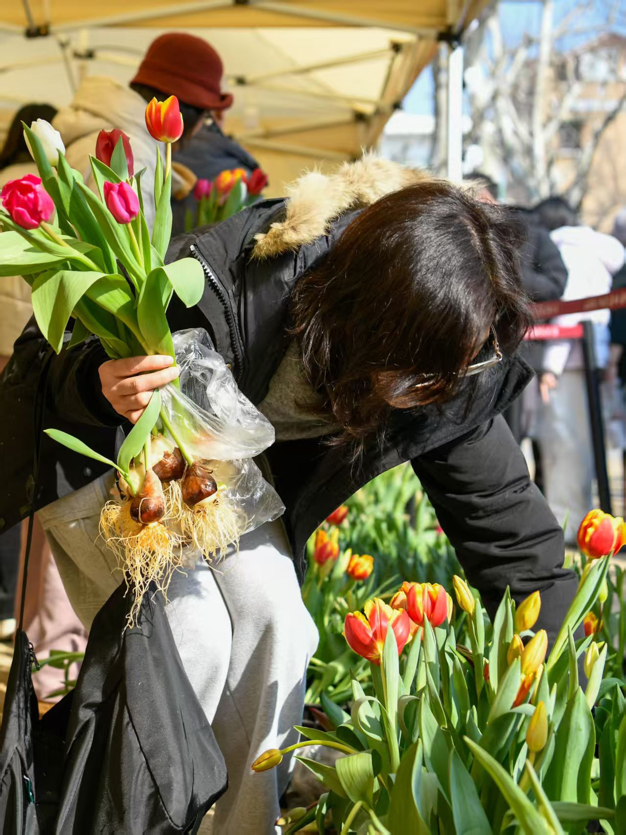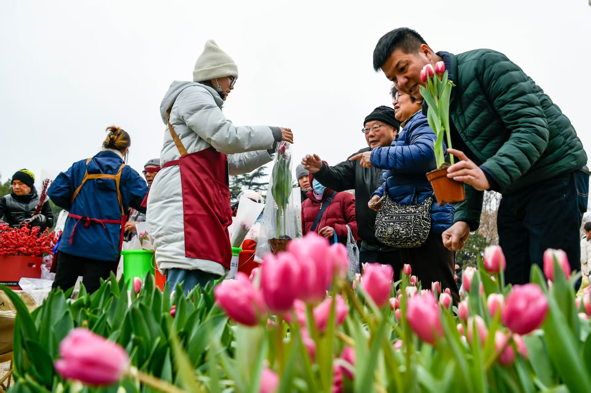 冬日暖阳中,600平米郁金香主题“光明花园”打造出绝美花海。市民游客赏花购花兴趣浓厚,将迎新的喜悦氛围拉满。
