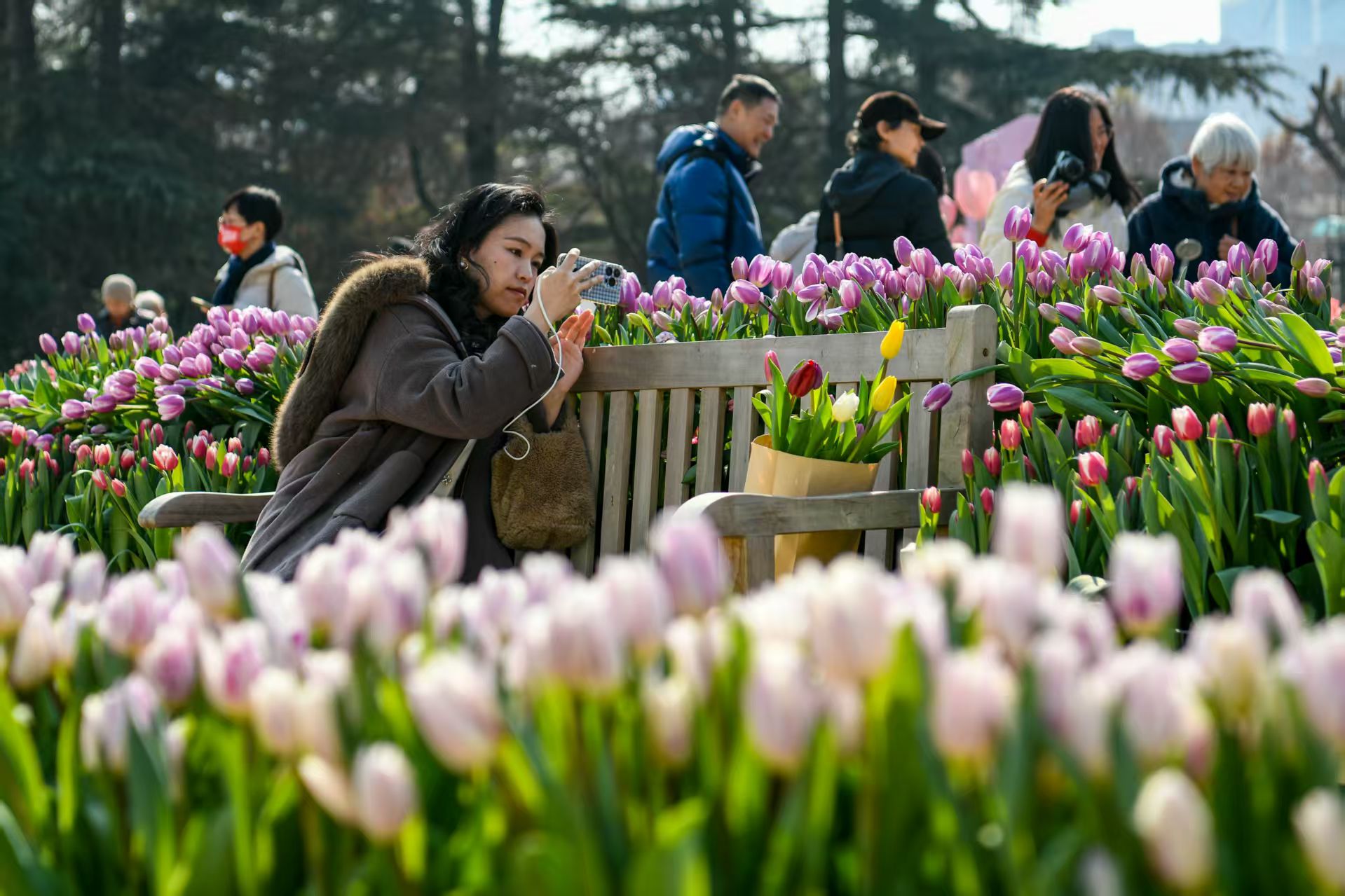 600平米郁金香主题“光明花园”打造出绝美花海。劳动报记者 颜筱依 摄影