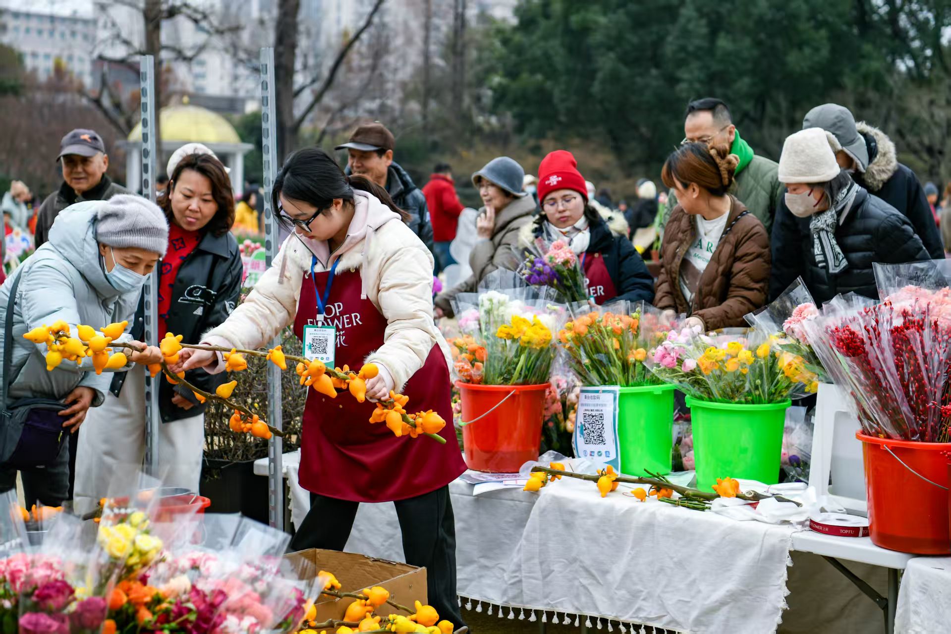 市民游客购花兴趣浓厚,尽兴而归。劳动报记者 颜筱依 摄影