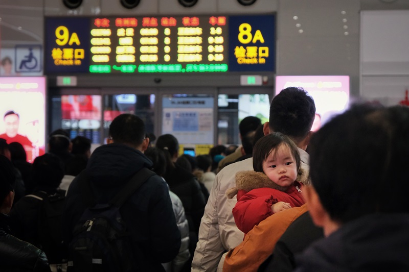 春运首日,虹桥站候车大厅客流明显增加。劳动报记者 包璐影 摄影