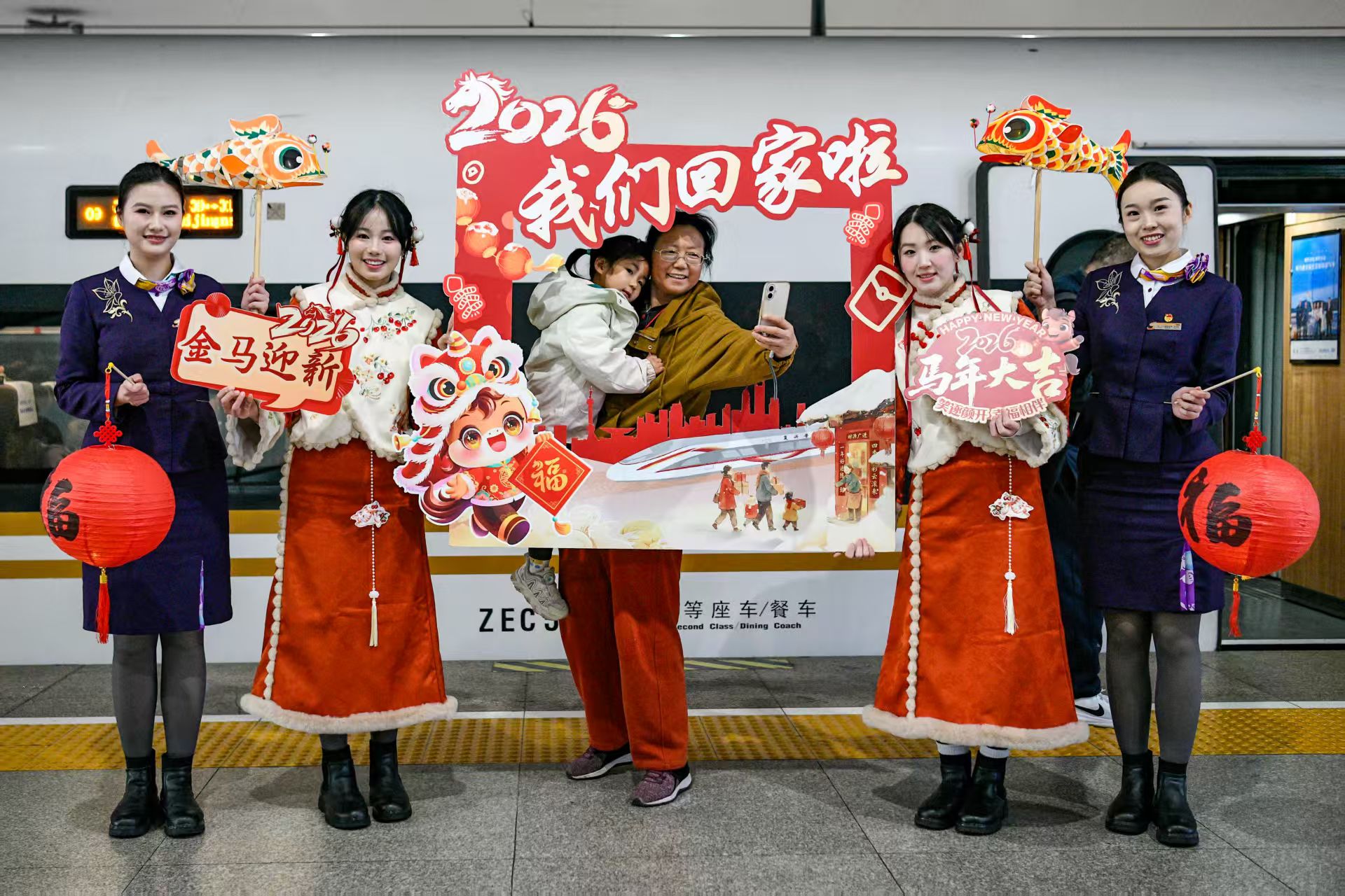 头图为春运期间,铁路车站布置了各种温馨氛围欢送旅客。劳动报记者 颜筱依 摄影