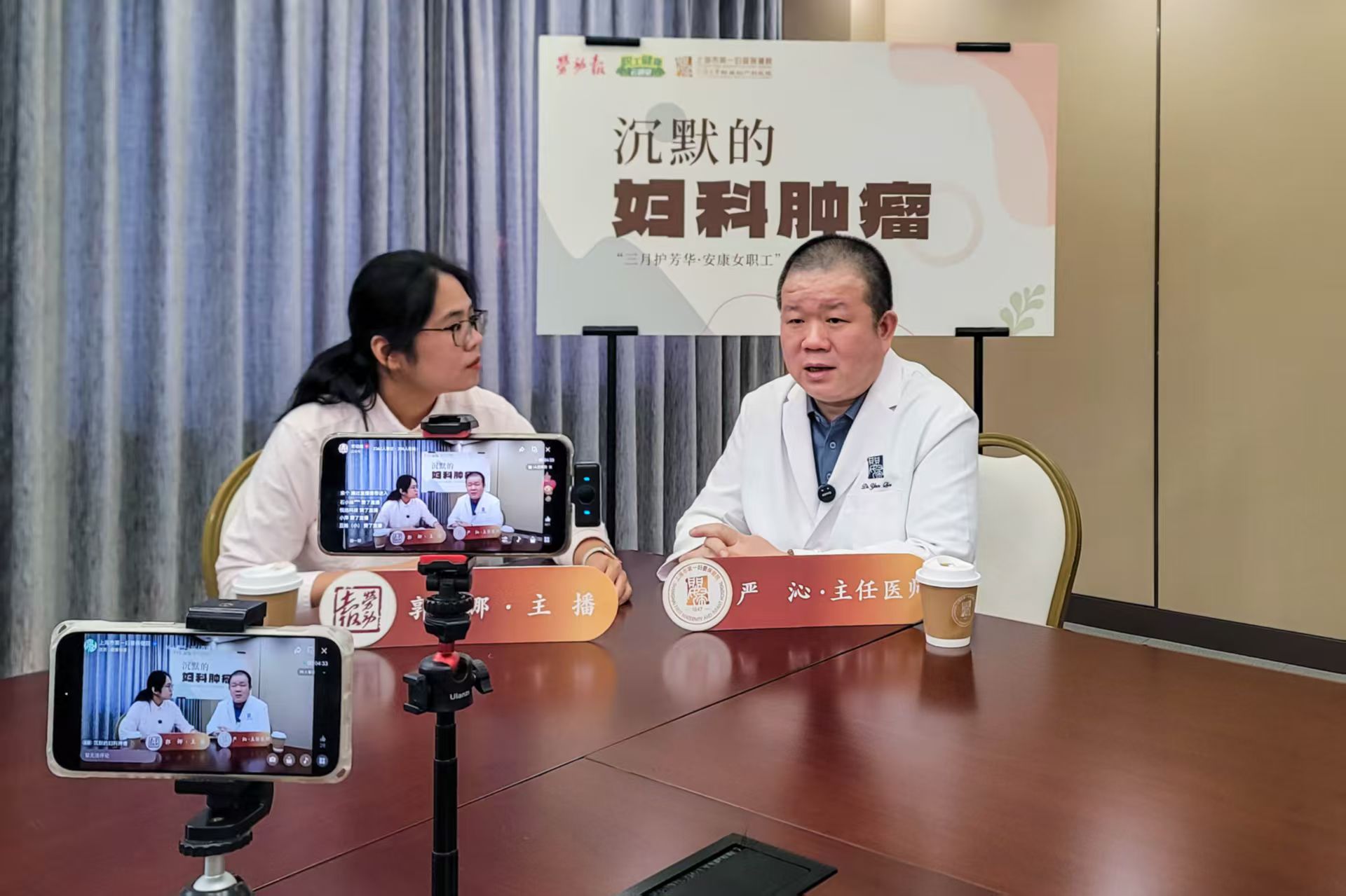 头图为劳动报“职工健康云讲堂”栏目直播现场。劳动报记者 颜筱依 摄影