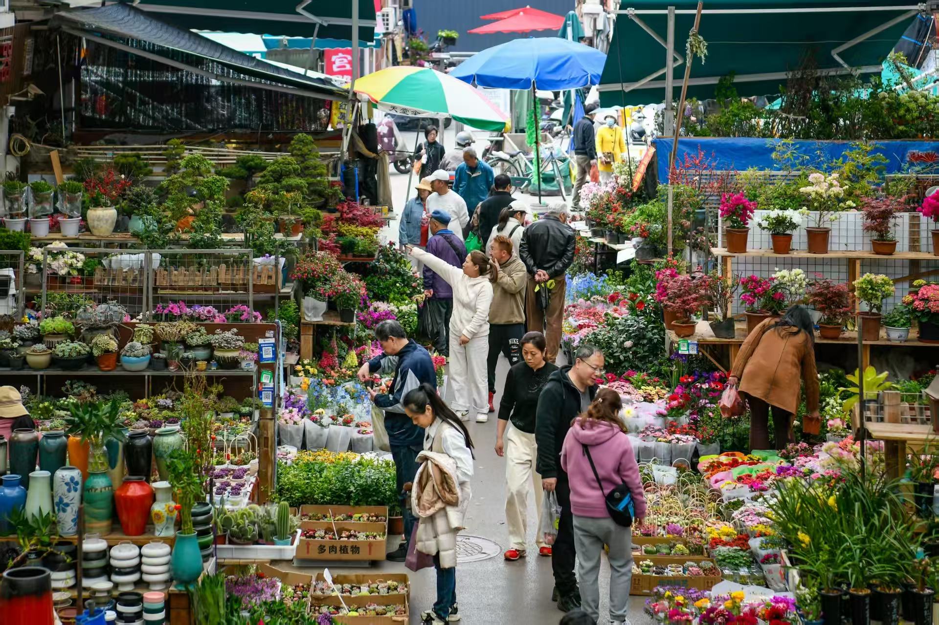 头图为花鸟市场中,各类鲜花品种繁多。劳动报记者颜筱依摄影