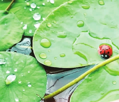 比“一花一世界”更有意思的是,一叶莲居然还会生宝宝。“宝宝”是一对双胞胎莲叶,正好有两只小瓢虫陪伴它们。据说一叶莲还能与鱼儿同碗而居。这不就是“鱼戏莲叶间”的诗画意象了吗?