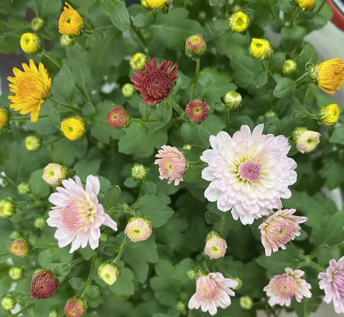 风染凉意,父亲养的盆菊正绽开一团团锦绣。