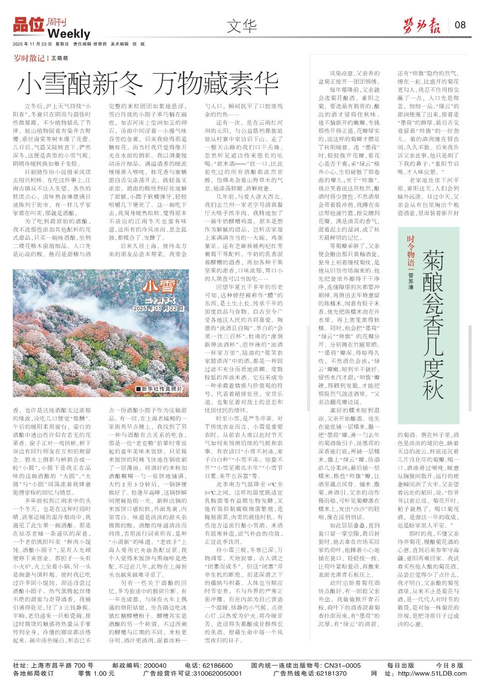 待小雪三候,冬寒已深,万物凋零、天地寂寥,古人谓之“闭塞而成冬”。但这“闭塞”并非生机的断绝,而是深潜之下的藏纳与积蓄。人体也当顺应时节安养,不与外界的严寒正面冲撞,而在内部为自己营造一个温暖、恬静的小气候。点亮心灯、以热爱为炉火,将冷暖甘苦、进退得失都酿成甘醇绵长的美酒,慰藉生命中每一个风雪夜归的日子。