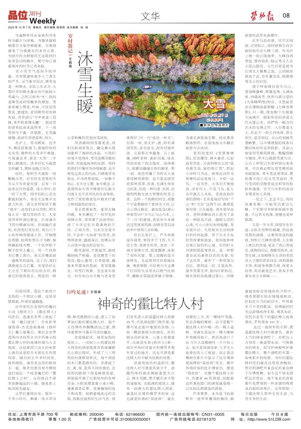 在沪上,雪为稀客,近岁冬,偶见轻絮漫飞,落地即化的毛毛雪,像样的大雪多年难遇。可每逢此季,看见“大雪”二字便心潮涌动,诸多回忆与遐想交织翩飞,期盼也随之而生。